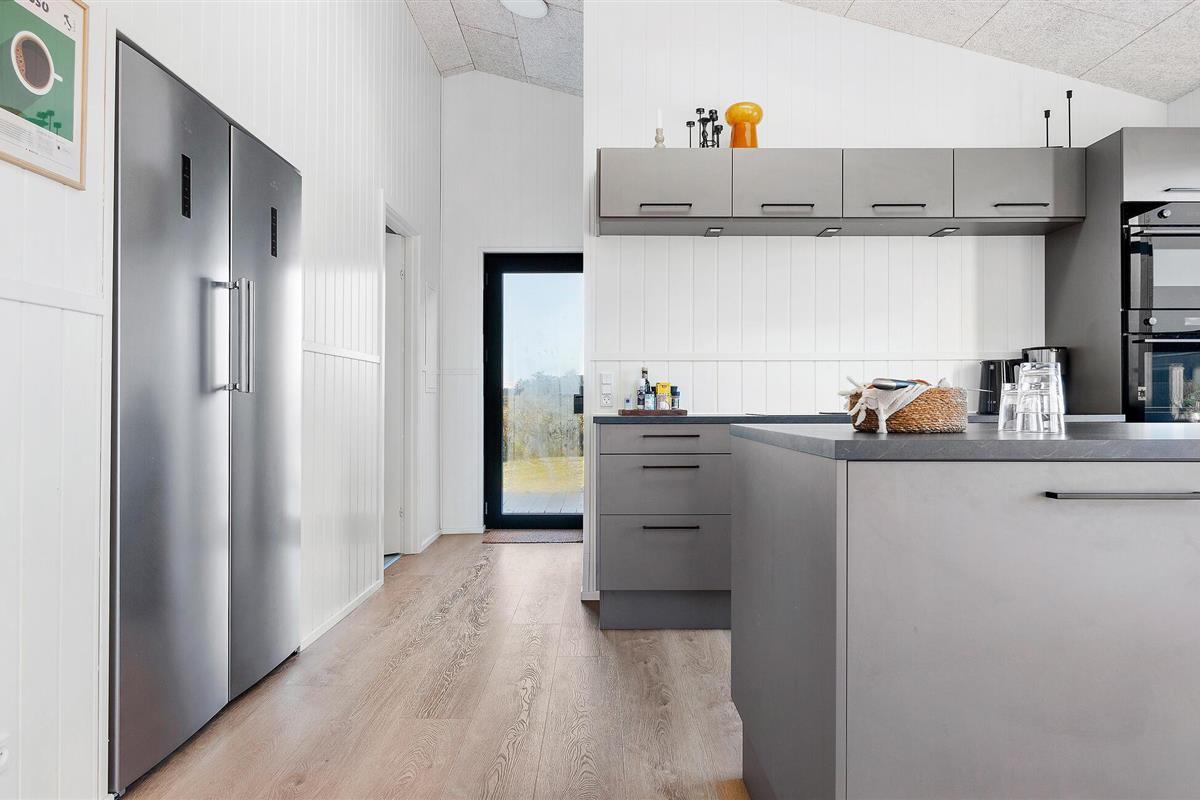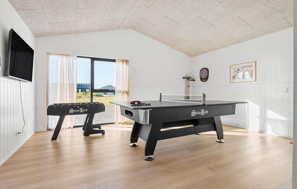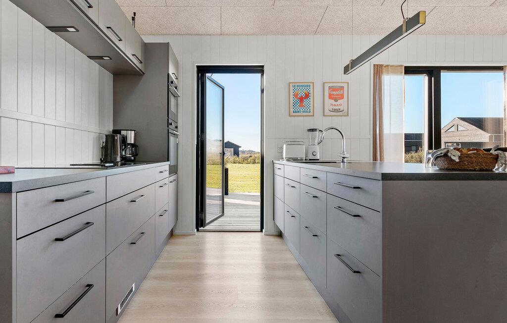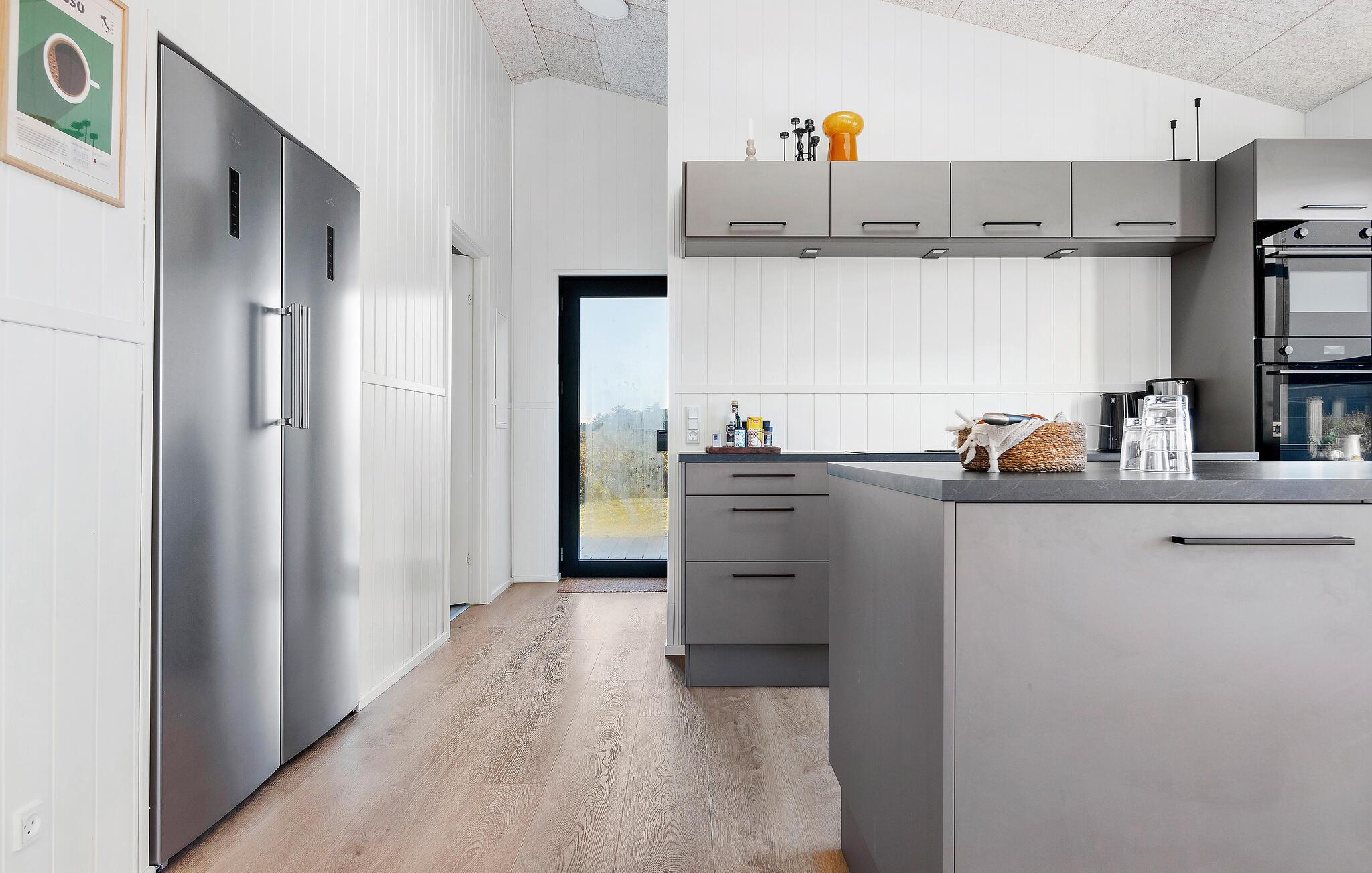 Dit gezellige vakantiehuis, dat ideaal is voor twee gezinnen, op Løkken Strand combineert Scandinavische charme met moderne voorzieningen. Begin de dag met een ontspannen ontbijt aan de grote houten eettafel en geniet van het prachtige uitzicht op de natuur door de ramen van vloer tot plafond. Je kunt ook dineren op het ruime terras, dat bij mooi weer een aangename sfeer biedt. Elke maaltijd kan gemakkelijk worden bereid in de open, moderne keuken.