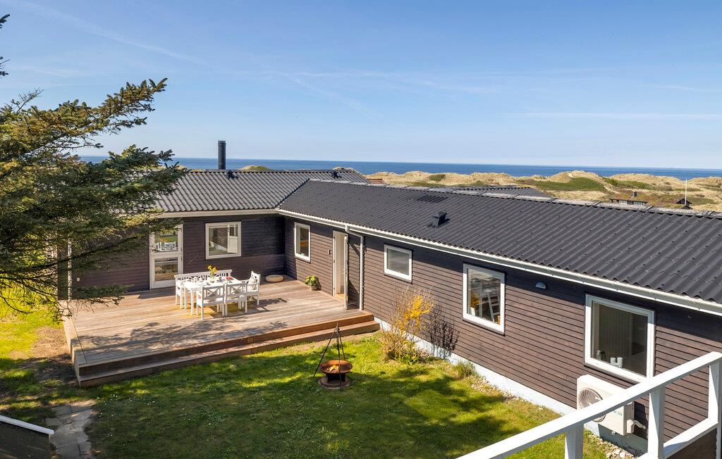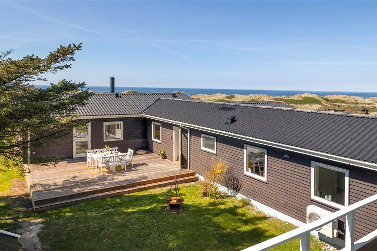 Gezellig vakantiehuis vlak bij het zandstrand met prachtig uitzicht op duinen en zee in Grønhøj, Denemarken.