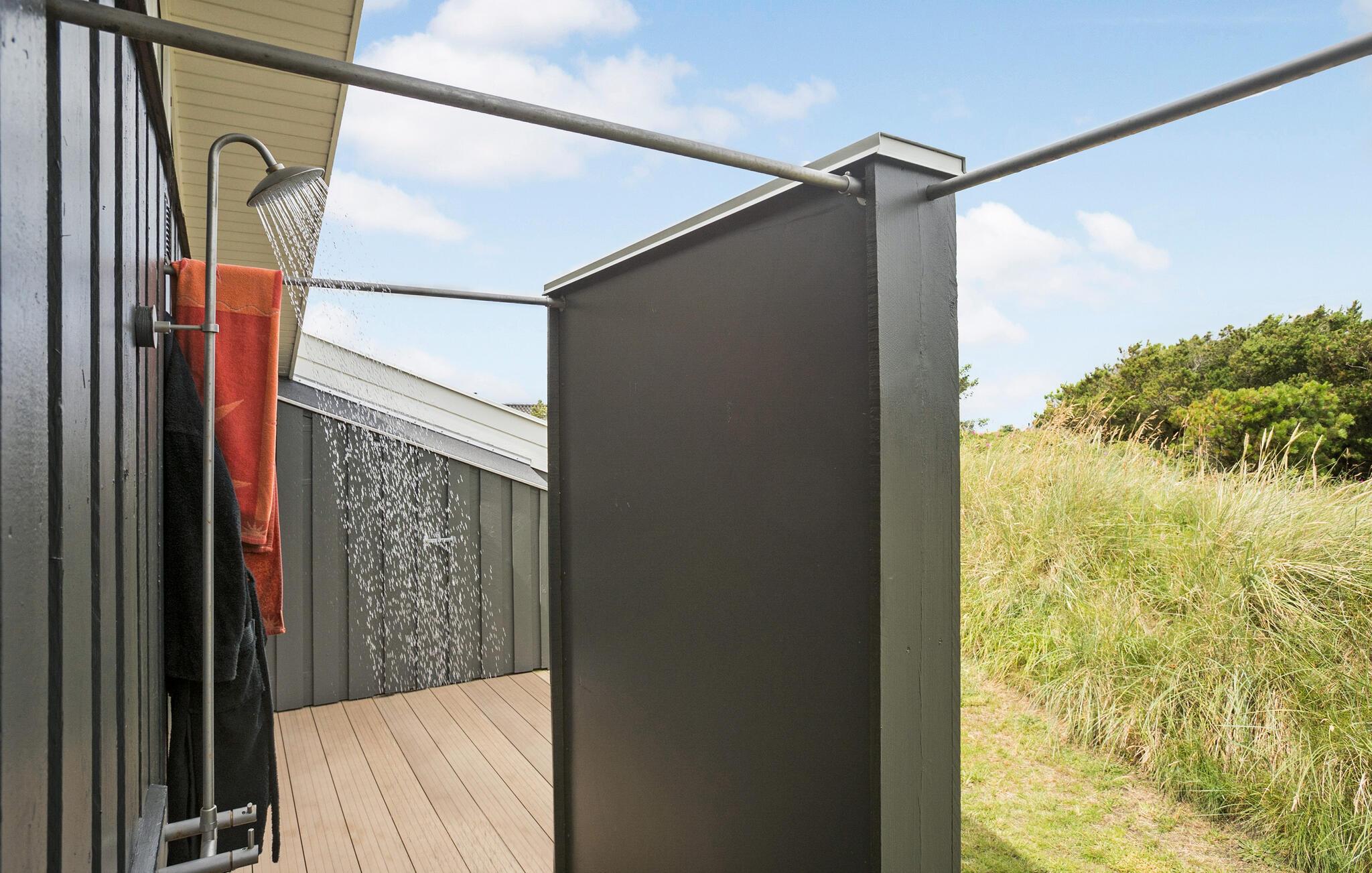 Buiten vind je grote terrassen op het oosten en westen, zodat je altijd de keuze hebt tussen zon of schaduw. Geniet van je ochtendkoffie met een fantastisch uitzicht op de duinen en de zee. Een ander terras op het noorden biedt je een bad onder de buitendouche met warm en koud water.