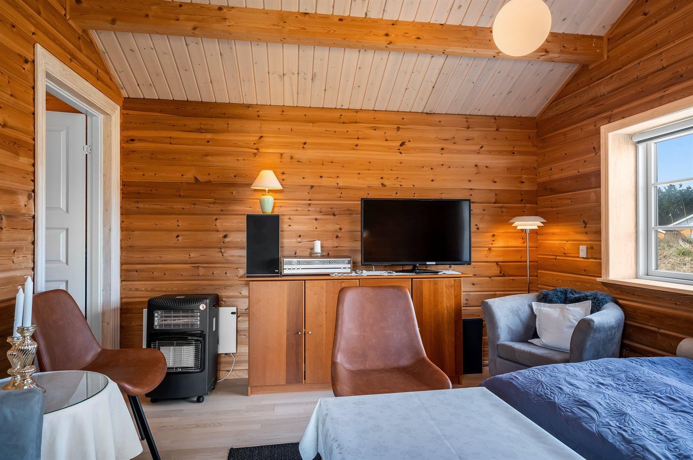 In de vakantiewoning is aanwezig televisie. 1 Smart-tv. Stereo-installatie. CD-speler. Tenminste 4 deense zenders. 1-3 sweedse zenders. 1-3 noorse zenders. Tenminste 4 duitse zenders. Draadloos internet.