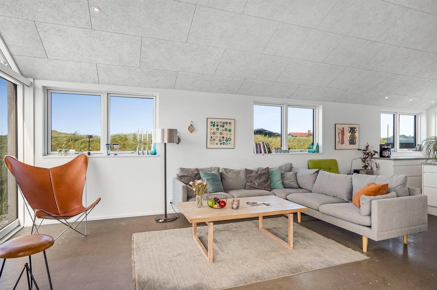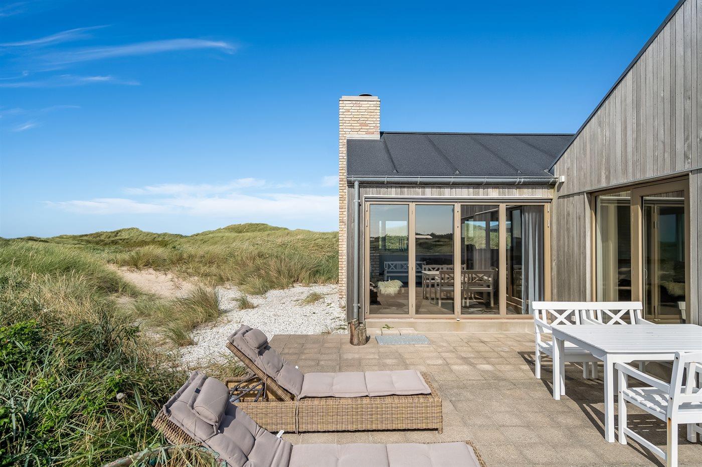 De vakantiewoning is gelegen op een 2500 m² groot Duingrond. Afstand tot de zee 100 m. Dichtstbijzijnde winkel 500 m. Bij de vakantiewoning hoort 85 m² terras. Daarnaast is er een 5 m² groot overdekt terras. Buitendouche. Parkeerplaats bij het huis.