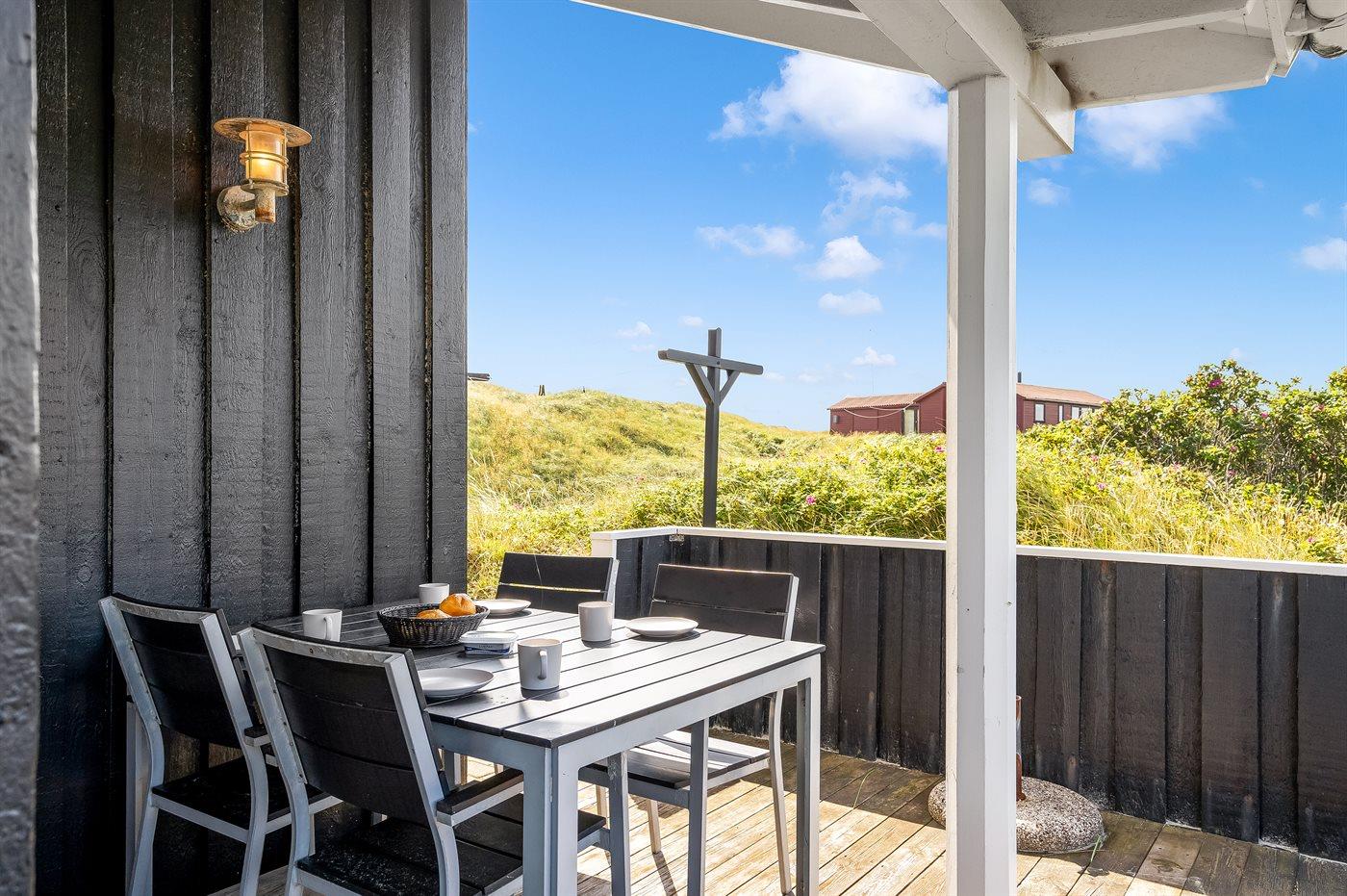 De vakantiewoning is gelegen op een 3363 m² groot Duingrond. Afstand tot de zee 250 m. Dichtstbijzijnde winkel 1000 m. Bij de vakantiewoning hoort 35 m² terras. Daarnaast is er een 5 m² groot overdekt terras. Gereedschapsruimte. Parkeerplaats bij het huis.