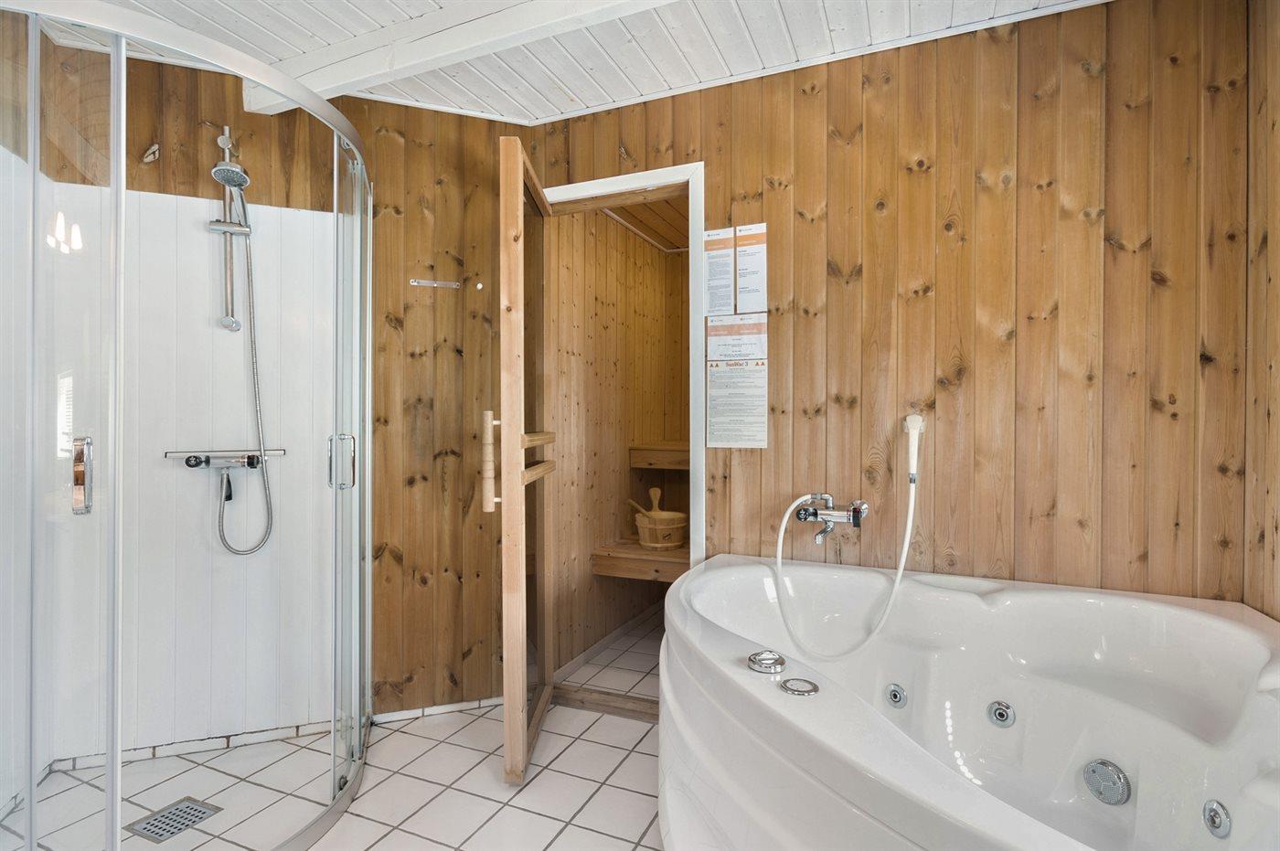 Er is 2 badkamers met douchehok en 2 toiletten. Er is vloerverwarming in 1 badkamer. De sauna biedt de gelegenheid tot ontspanning.
