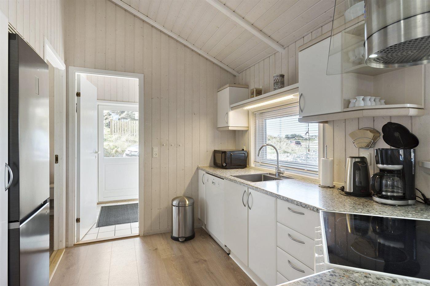 De keuken is uitgerust met koelkast Er zijn 4 keramische kookplaten, heteluchtoven, magnetron en vaatwasser.