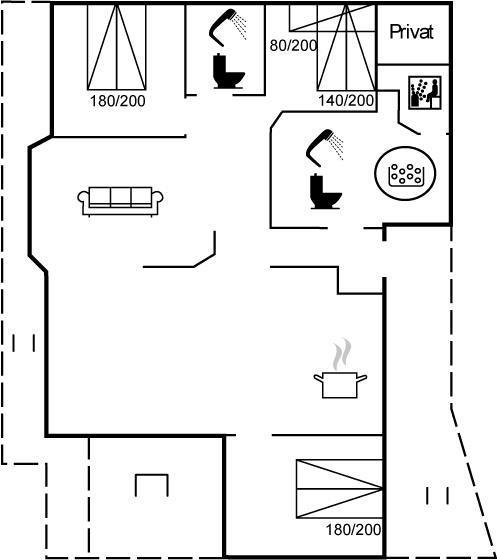 Er is 2 badkamers met douchehok en 2 toiletten. Er is vloerverwarming in 2 van de badkamers. De sauna biedt de gelegenheid tot ontspanning.
