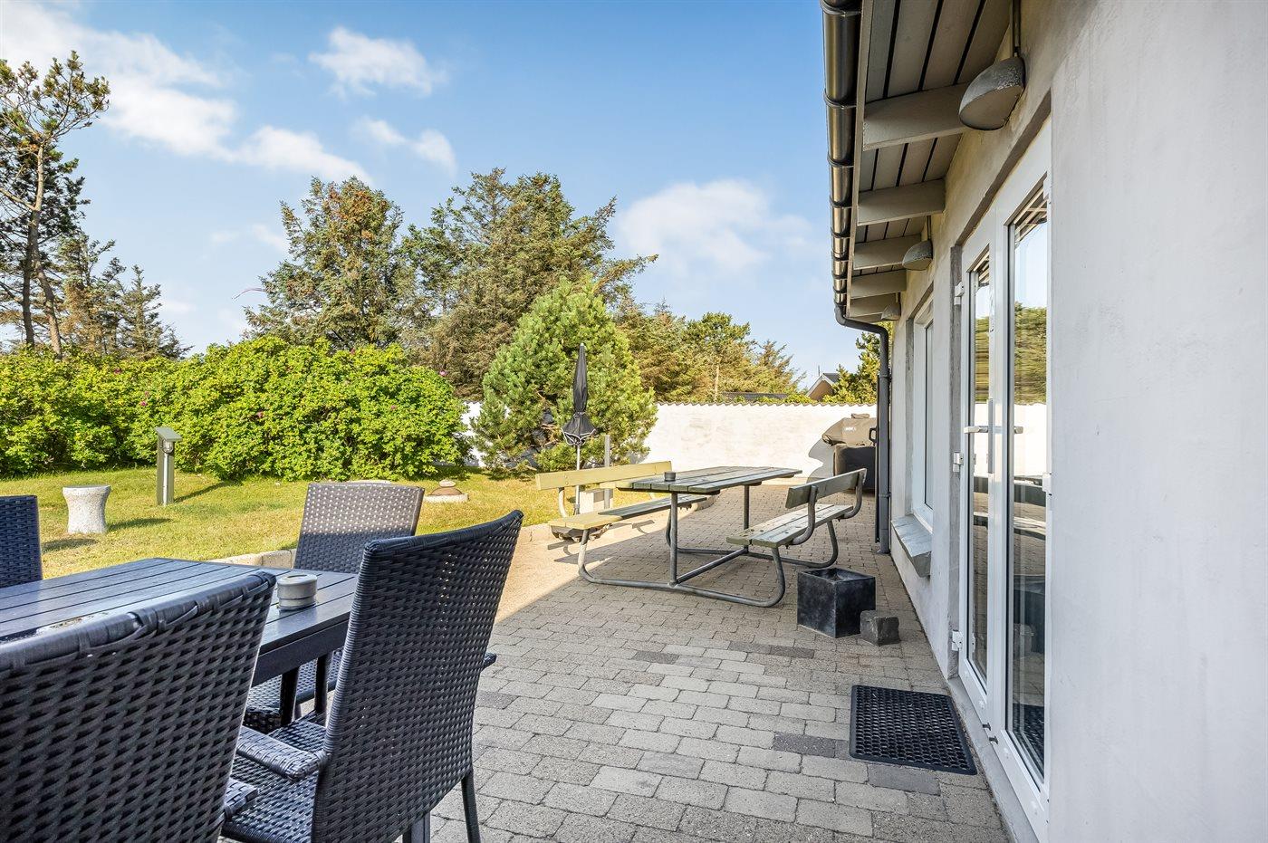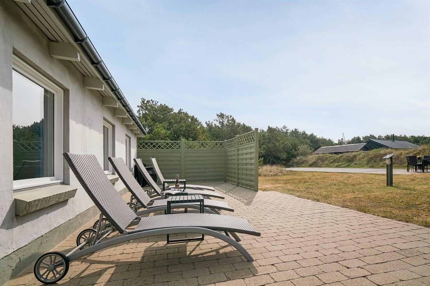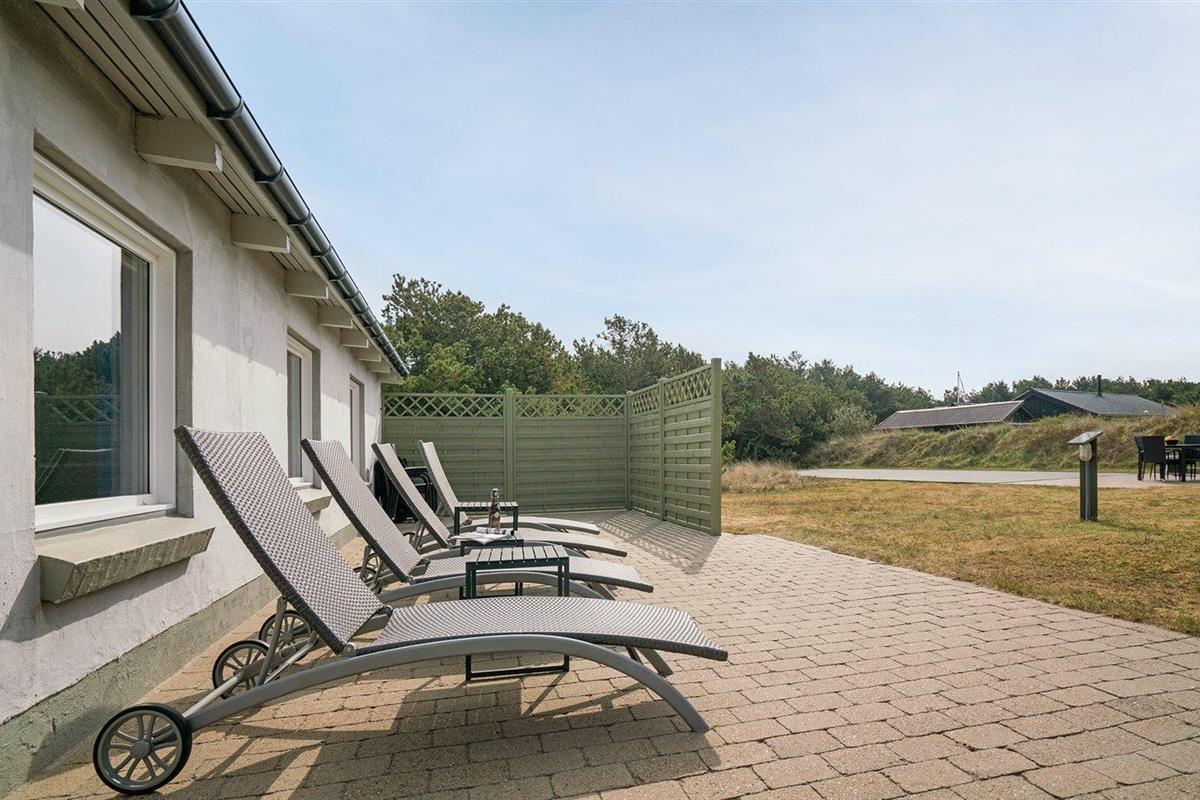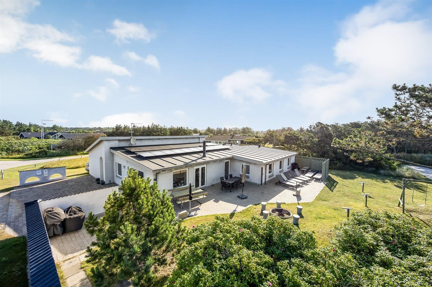 De vakantiewoning is gelegen op een 3600 m² groot natuural grond. Afstand tot de zee 700 m. Dichtstbijzijnde winkel 750 m. Bij de vakantiewoning hoort 115 m² terras. Gereedschapsruimte. Schommel. Zandbak. Het huis heeft een stopcontact voor het opladen van een elektrische auto. Oplaadstekker type 2. Parkeerplaats bij het huis.