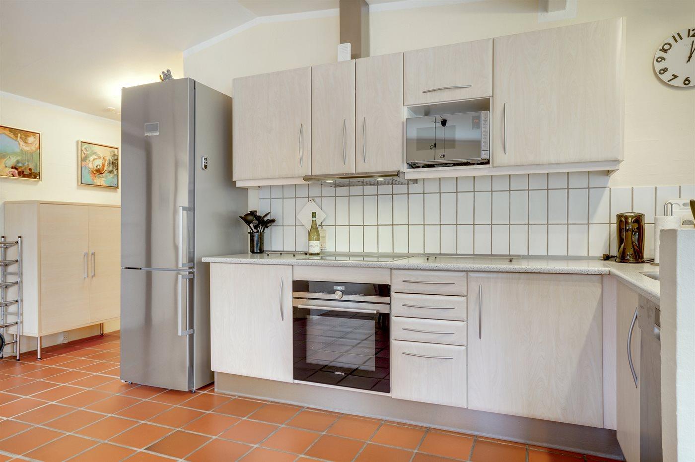 De keuken is uitgerust met 2 koelkasten Er zijn 4 keramische kookplaten, heteluchtoven, magnetron en vaatwasser.