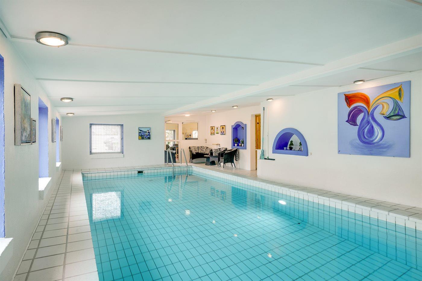 Het binnenzwembad biedt de gelegenheid om heerlijk te spelen en gezellig samen te zijn. Het zwembad is 3,5 m breed, 8,5 m lang en tot 1,3 m diep. Het water heeft een temperatuur tussen de 24 en 28 °C.