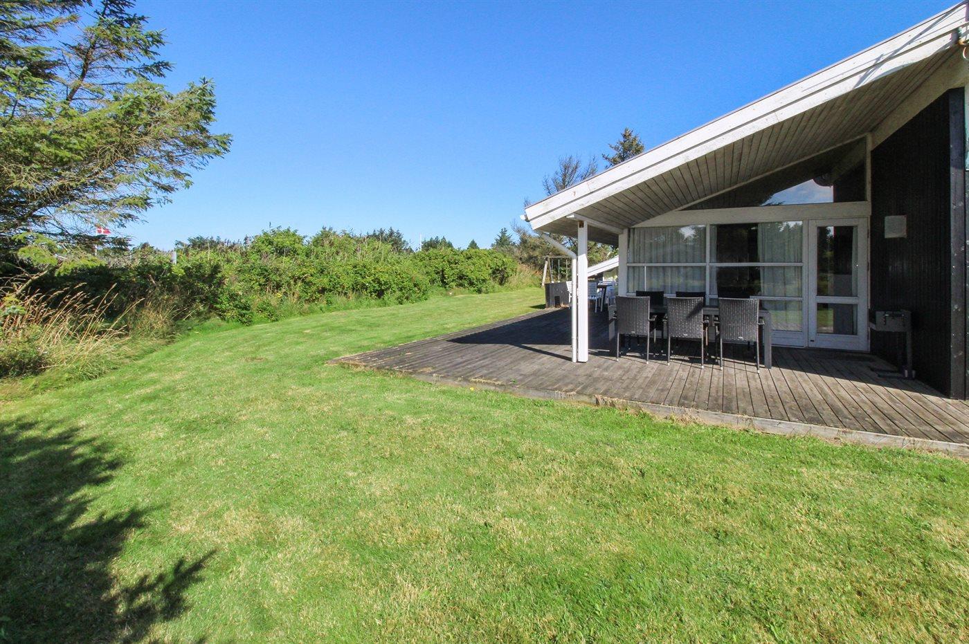 De vakantiewoning is gelegen op een 1200 m² groot natuural grond. Afstand tot de zee 900 m. Dichtstbijzijnde winkel 500 m. Bij de vakantiewoning hoort 45 m² terras. Daarnaast is er een 12 m² groot overdekt terras. Schommel. Zandbak. Parkeerplaats bij het huis.