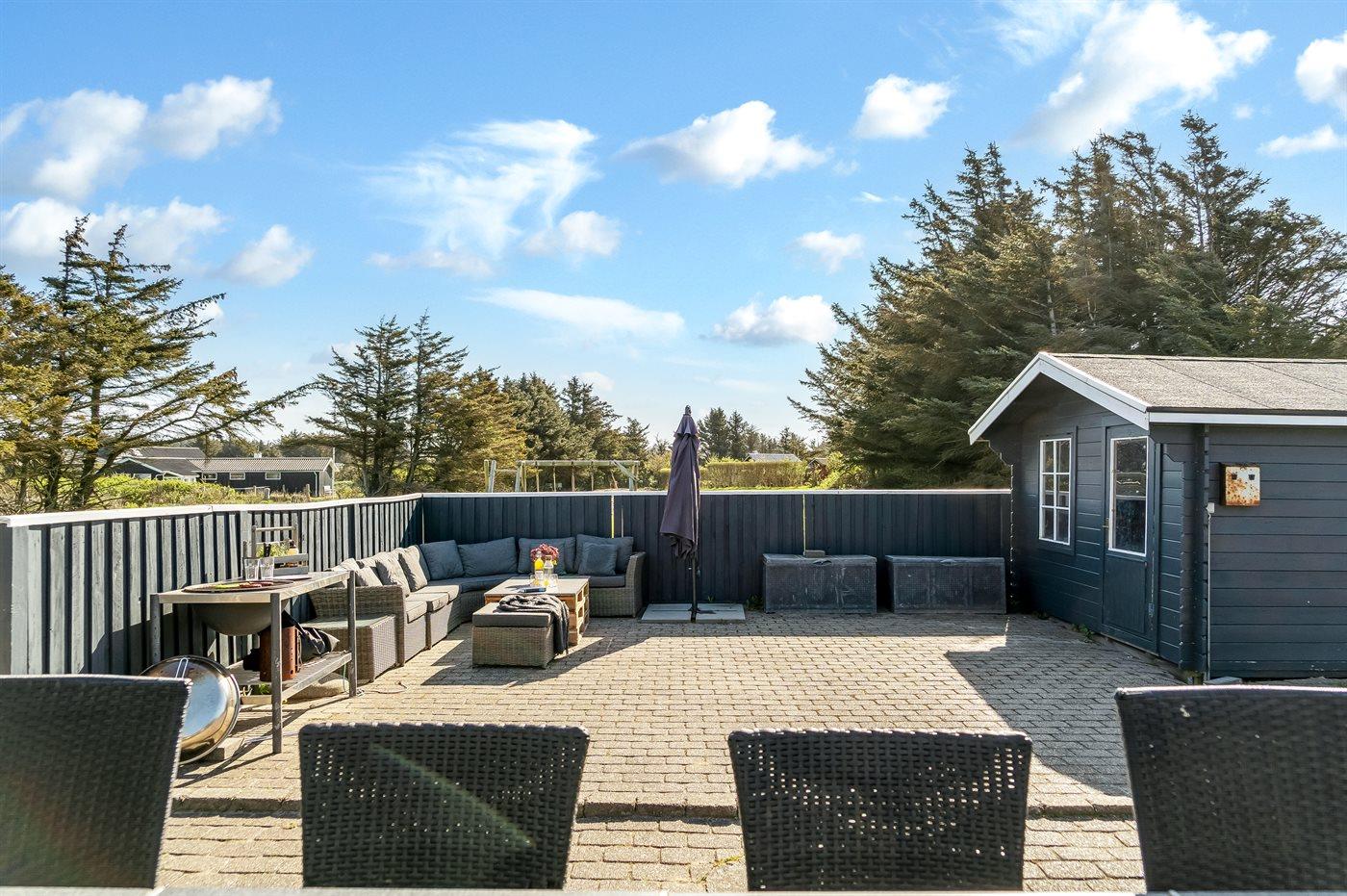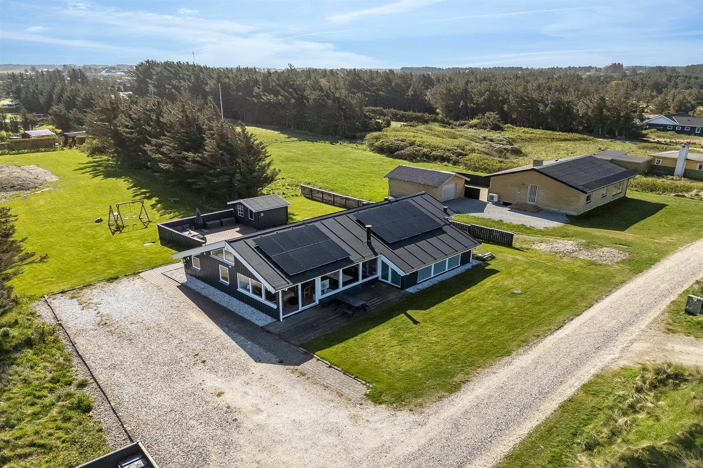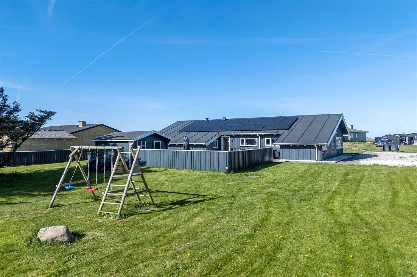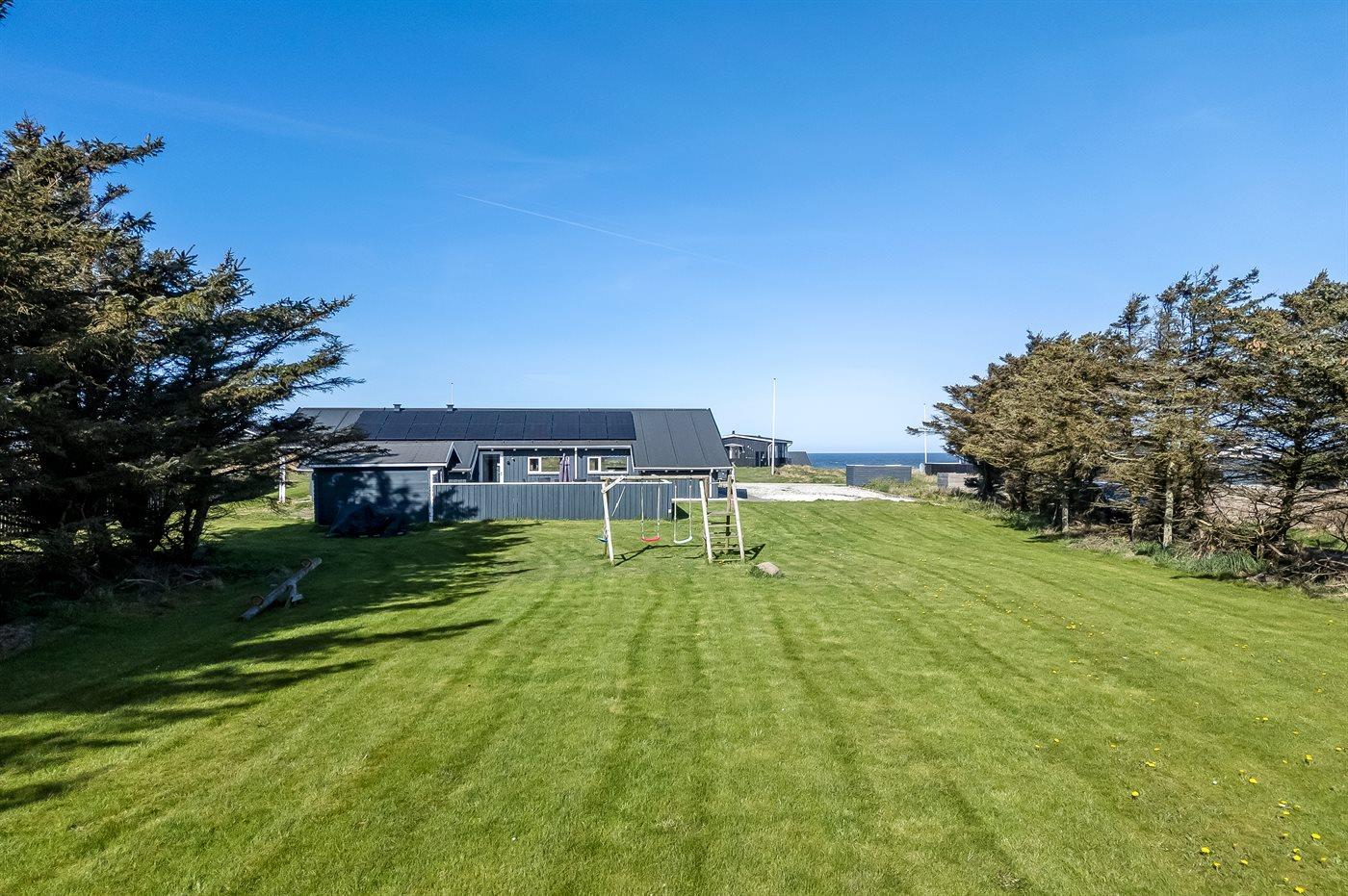 De vakantiewoning is gelegen op een 2500 m² groot aangelegde tuin. Afstand tot de zee 250 m. Dichtstbijzijnde winkel 1500 m. Bij de vakantiewoning hoort terras. Gereedschapsruimte. Schommel. Barbecue. Het huis heeft een stopcontact voor het opladen van een elektrische auto. Oplaadstekker type 2. Met 11 kW-laadvermogen. Parkeerplaats bij het huis.