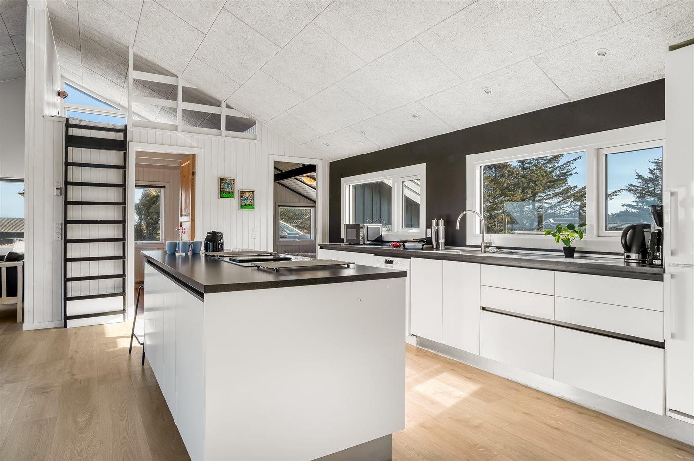 De keuken is uitgerust met koelkast Er is 4 inductiekookplaten, heteluchtoven, magnetron en vaatwasser. Vloerverwarming in de keuken.