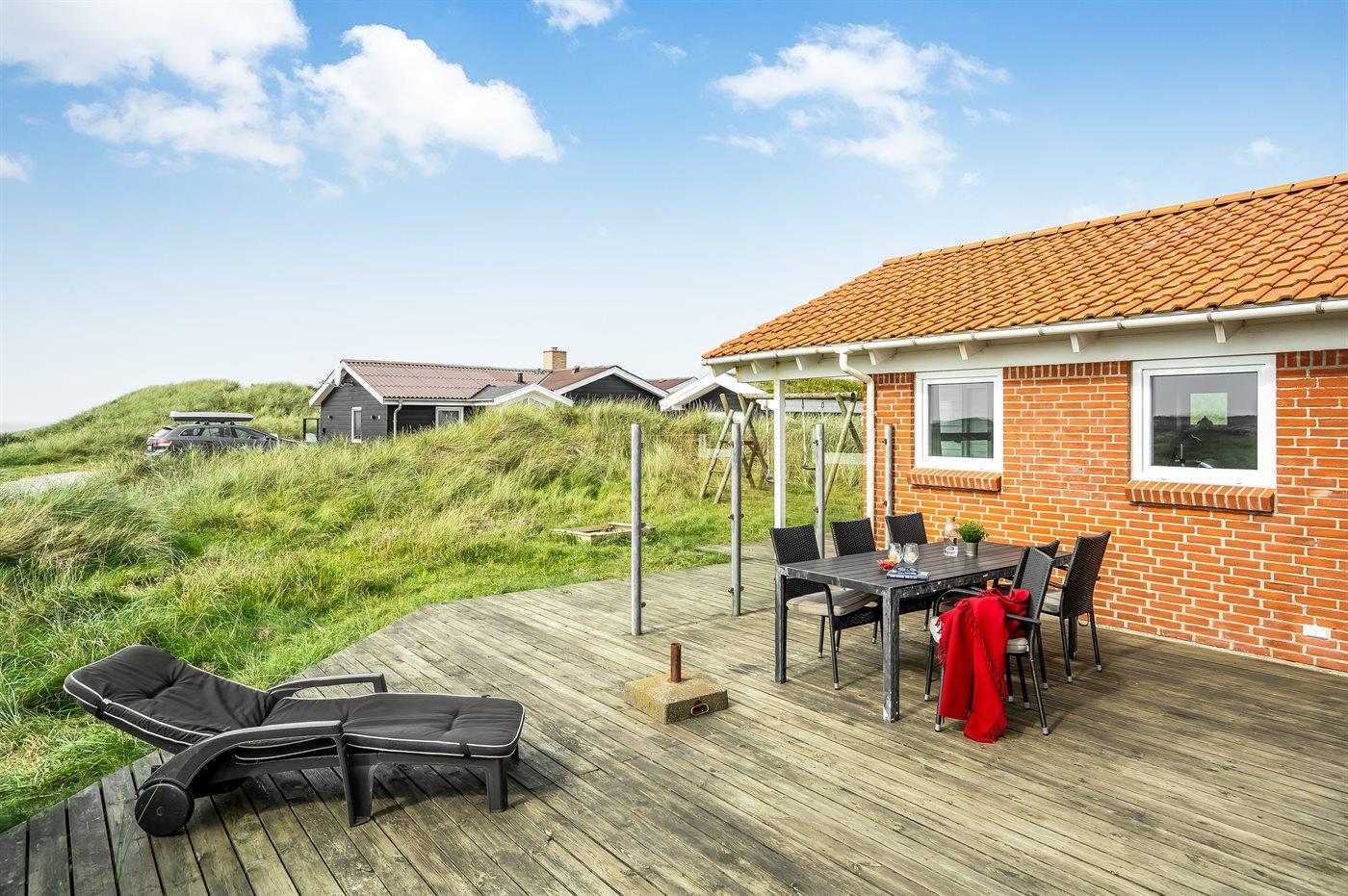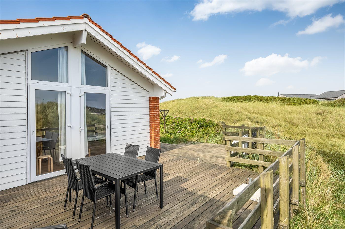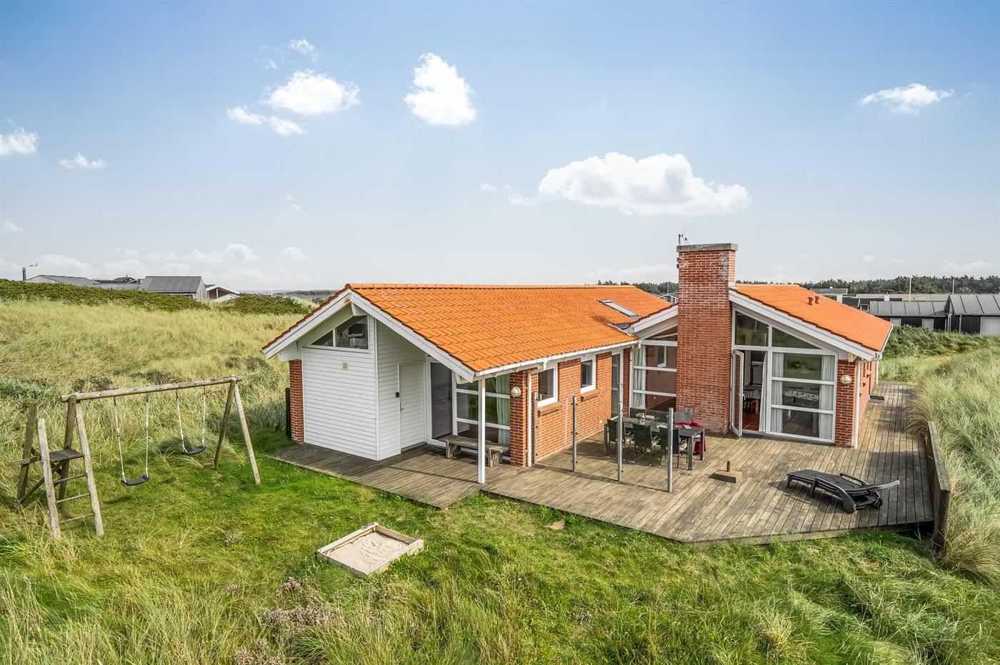 De vakantiewoning is gelegen op een 1600 m² groot Duingrond. Afstand tot de zee 150 m. Dichtstbijzijnde winkel 500 m. Er is een golfbaan op een afstand van 11500 m. Bij de vakantiewoning hoort 120 m² terras. Daarnaast is er een 10 m² groot overdekt terras. Gereedschapsruimte. Schommel. Parkeerplaats bij het huis.