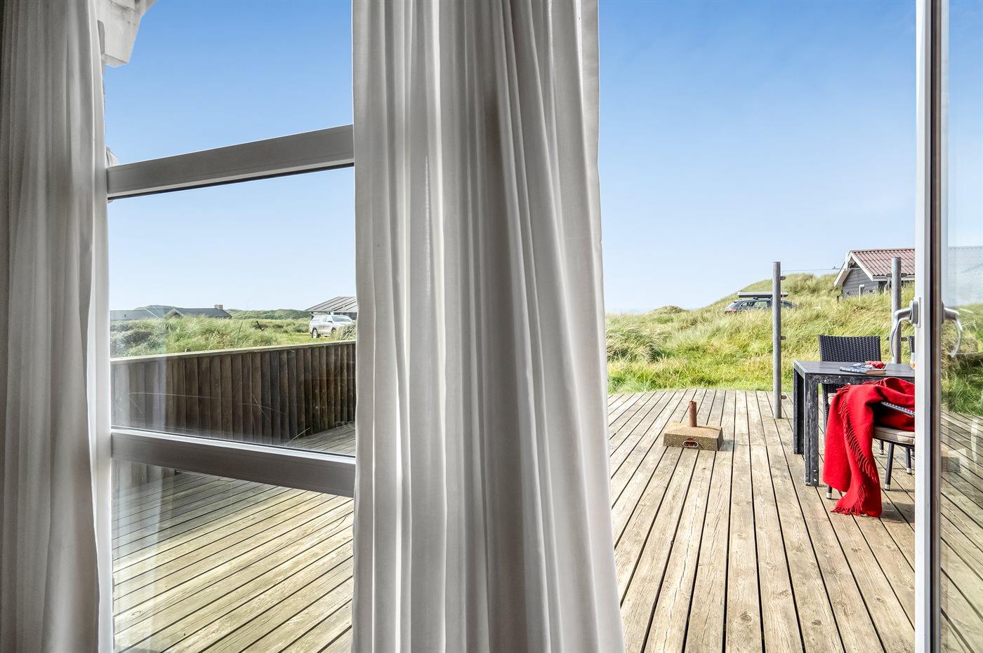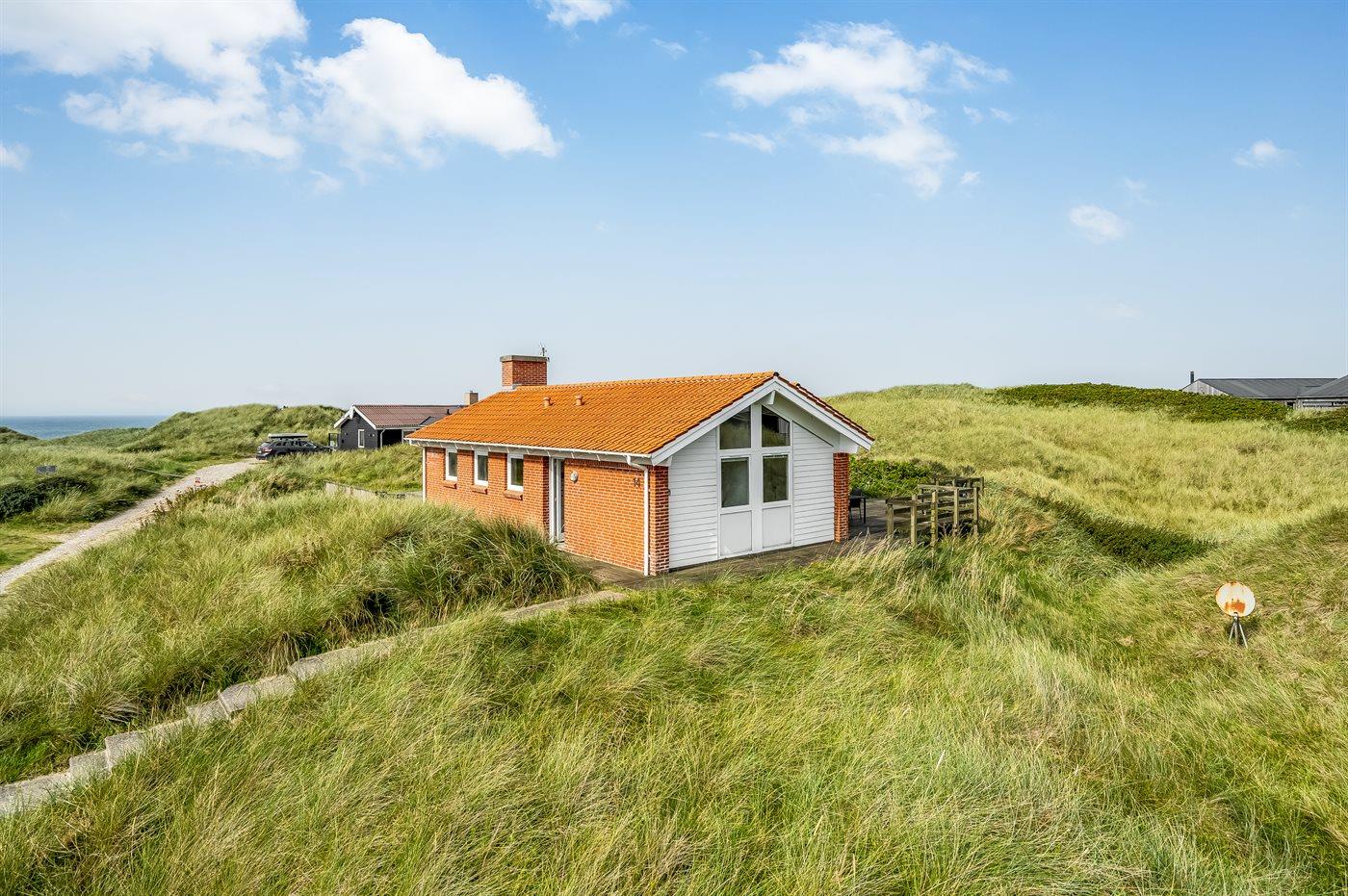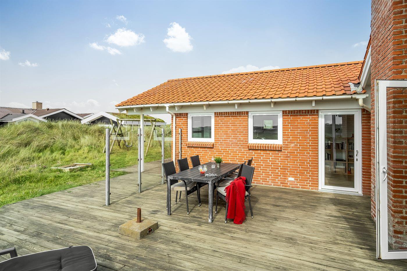 De vakantiewoning is gelegen op een 1600 m² groot Duingrond. Afstand tot de zee 150 m. Dichtstbijzijnde winkel 500 m. Er is een golfbaan op een afstand van 11500 m. Bij de vakantiewoning hoort 120 m² terras. Daarnaast is er een 10 m² groot overdekt terras. Gereedschapsruimte. Schommel. Parkeerplaats bij het huis.
