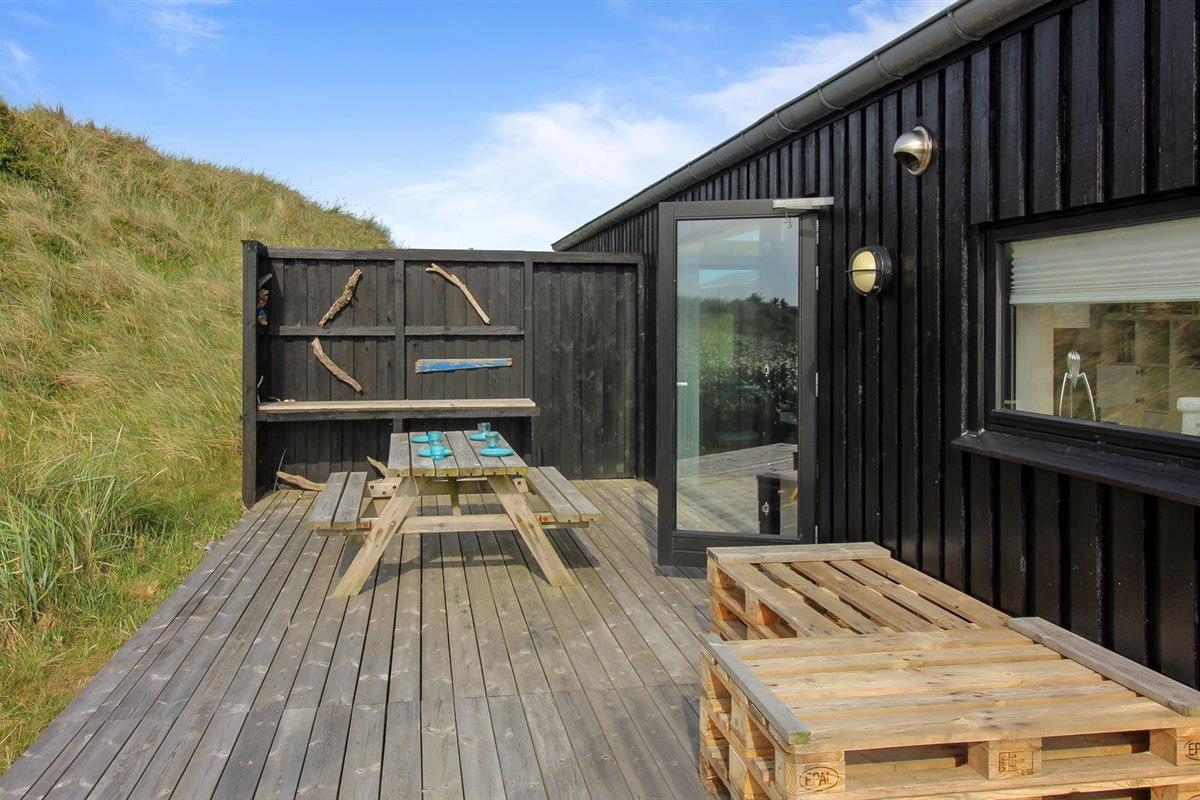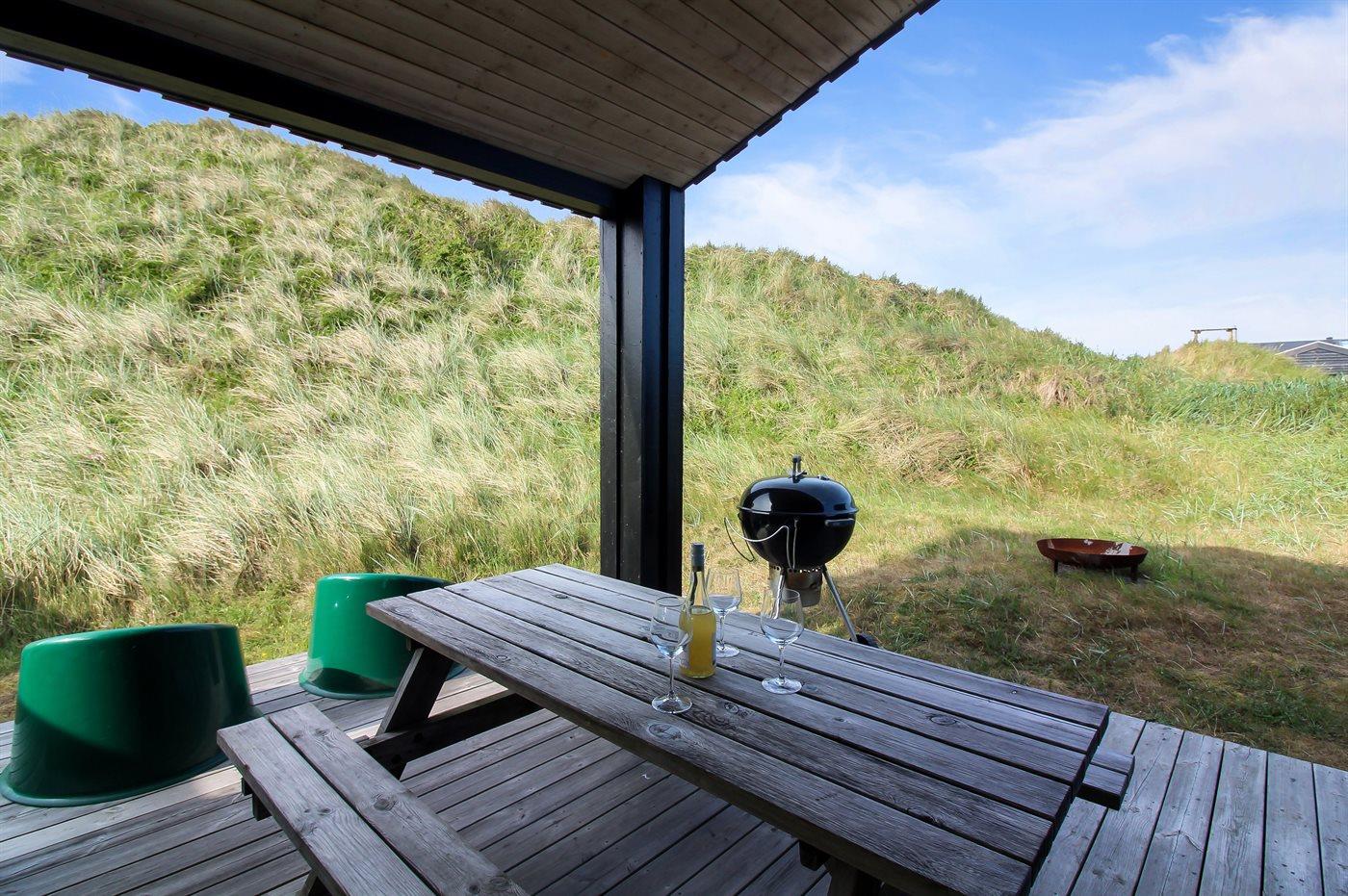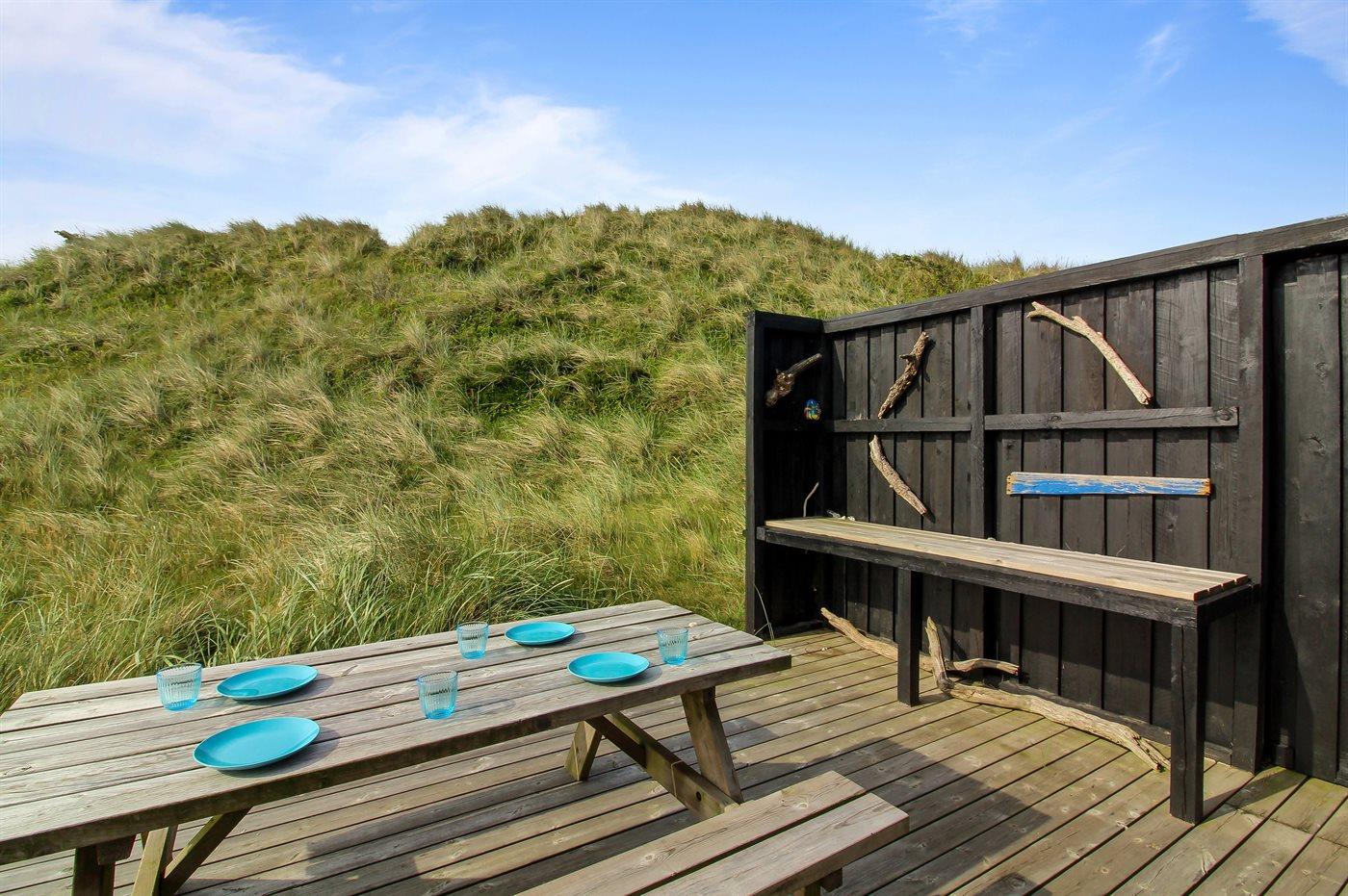 De vakantiewoning is gelegen op een 2870 m² groot Duingrond. Afstand tot de zee 300 m. Dichtstbijzijnde winkel 800 m. Bij de vakantiewoning hoort 50 m² terras. Daarnaast is er een 16 m² groot overdekt terras. Parkeerplaats bij het huis.