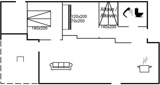 Er zijn in totaal 2 slaapkamers. De slaapplaatsen zijn als volgt verdeeld: 2 slaapplaatsen in tweepersoonsbed. 2 slaapplaatsen in eenpersoonsbedden. 2 slaapplaatsen in alkoof.