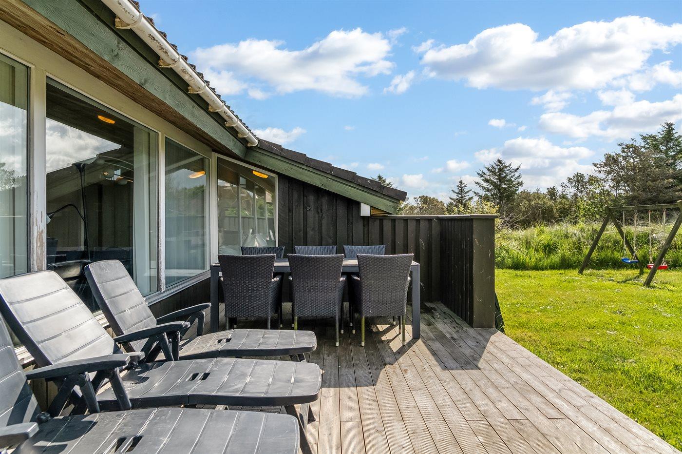 De vakantiewoning is gelegen op een 1287 m² groot natuural grond. Afstand tot de zee 400 m. Dichtstbijzijnde winkel 400 m. Bij de vakantiewoning hoort 40 m² terras. Daarnaast is er een 5 m² groot overdekt terras. Schommel. Zandbak. Het huis heeft een stopcontact voor het opladen van een elektrische auto.