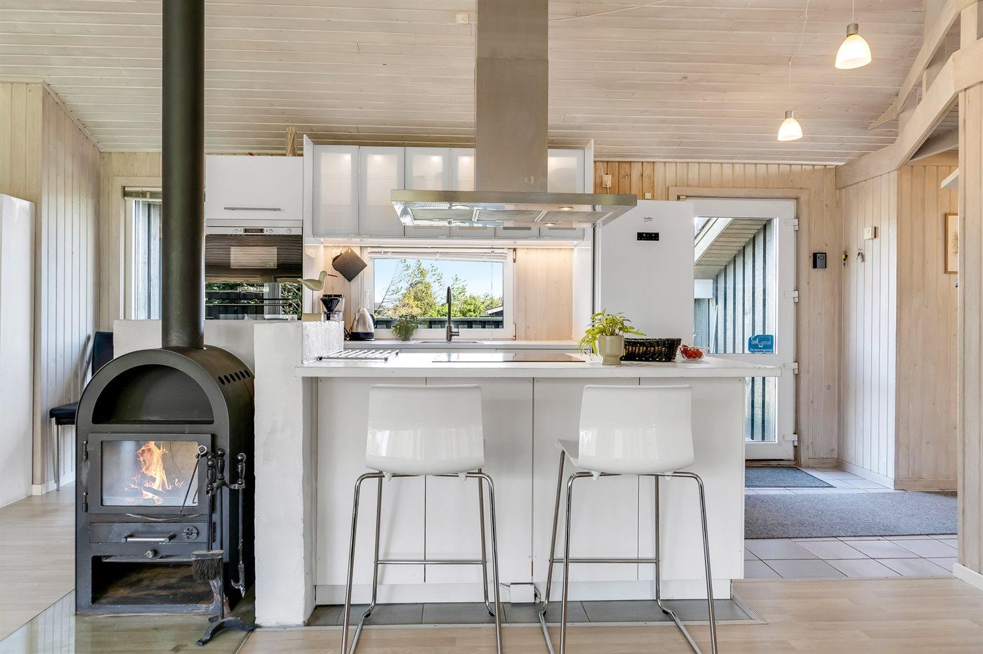 De keuken is uitgerust met koelkast Er is 4 inductiekookplaten, heteluchtoven, magnetron en vaatwasser.