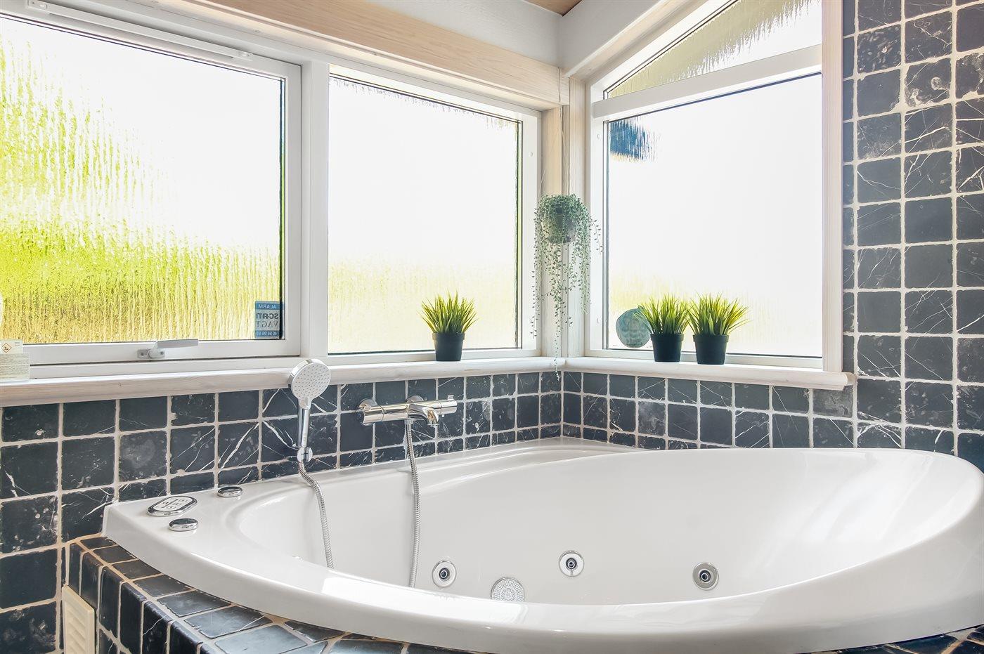 Het binnenbubbelbad (vulwater) biedt ontspanning aan 2 personen.