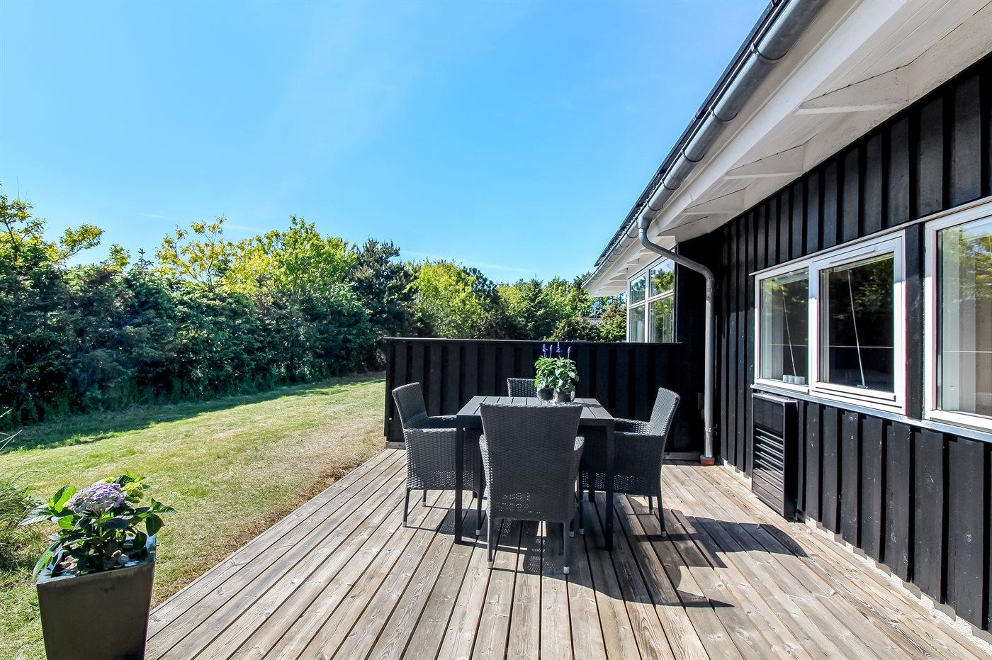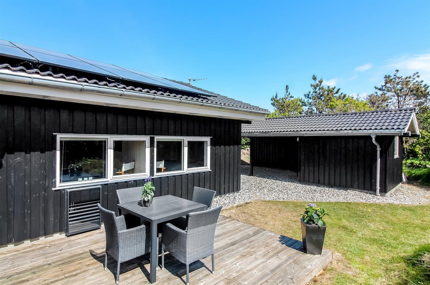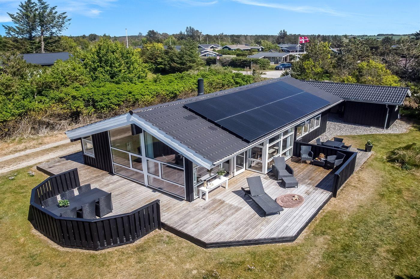 De vakantiewoning is gelegen op een 1561 m² groot natuural grond. Afstand tot de zee 450 m. Dichtstbijzijnde winkel 300 m. Bij de vakantiewoning hoort 95 m² terras. Daarnaast is er een 5 m² groot overdekt terras. Schommel. Zandbak.Vuurplaats. Carport ter beschikking. Het huis heeft een stopcontact voor het opladen van een elektrische auto. Met 11 kW-laadvermogen.