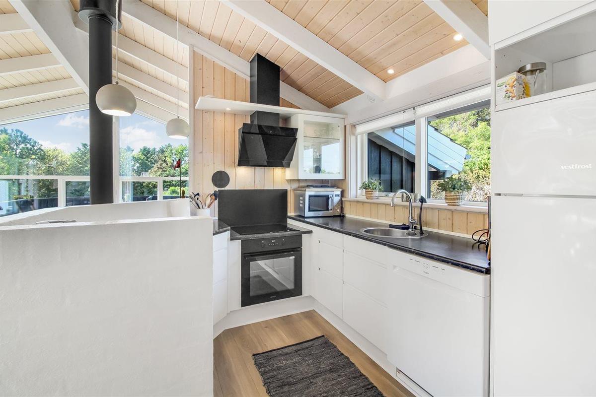 De keuken is uitgerust met koelkast Er zijn 4 keramische kookplaten, heteluchtoven, magnetron en vaatwasser.