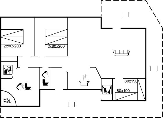Er is 2 badkamers met douchehok en 2 toiletten. Er is vloerverwarming in 2 van de badkamers. De sauna biedt de gelegenheid tot ontspanning.