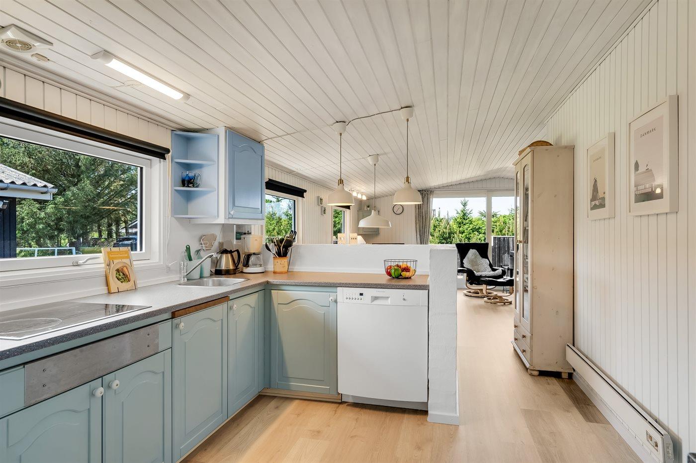 De keuken is uitgerust met koelkast Er is 4 elektrische kookplaten, bakoven, magnetron en vaatwasser.