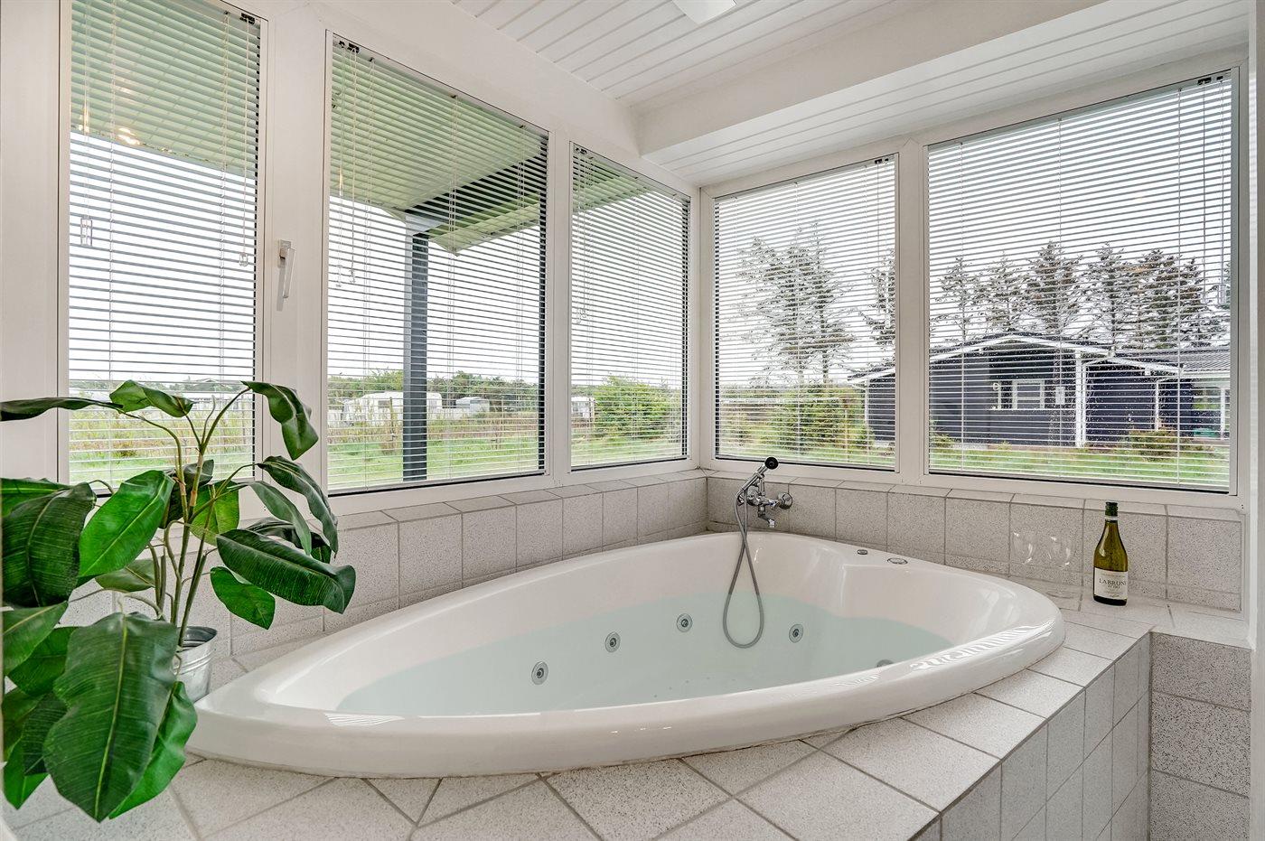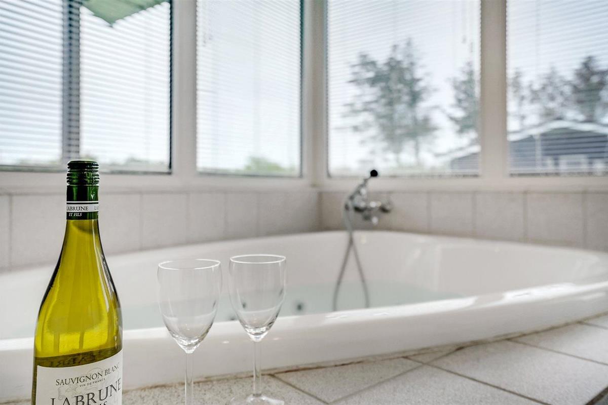 Het binnenbubbelbad (vulwater) biedt ontspanning aan 3 personen in een afzonderlijke badruimte met eigen douchecabine en vloerverwarming.