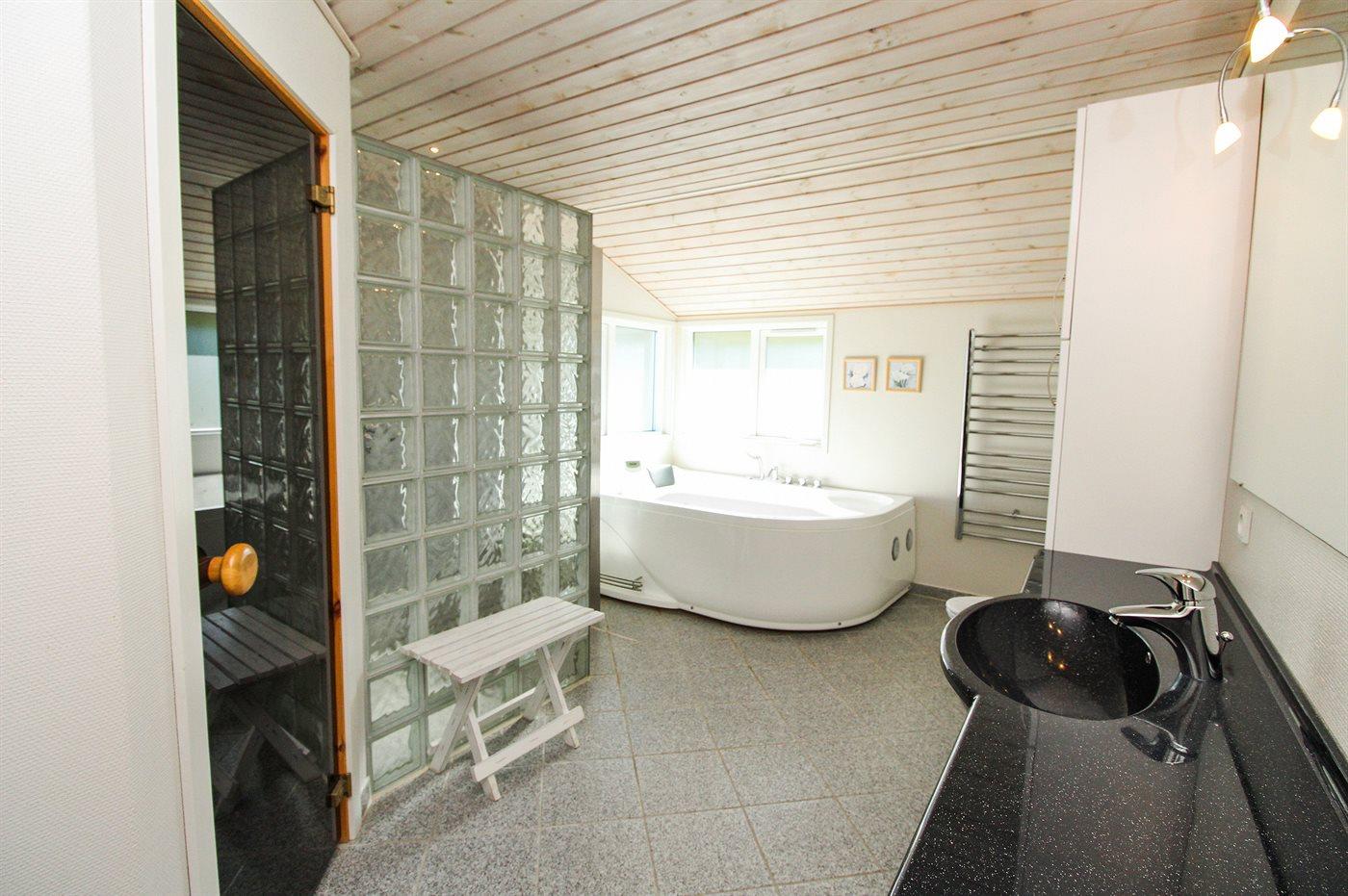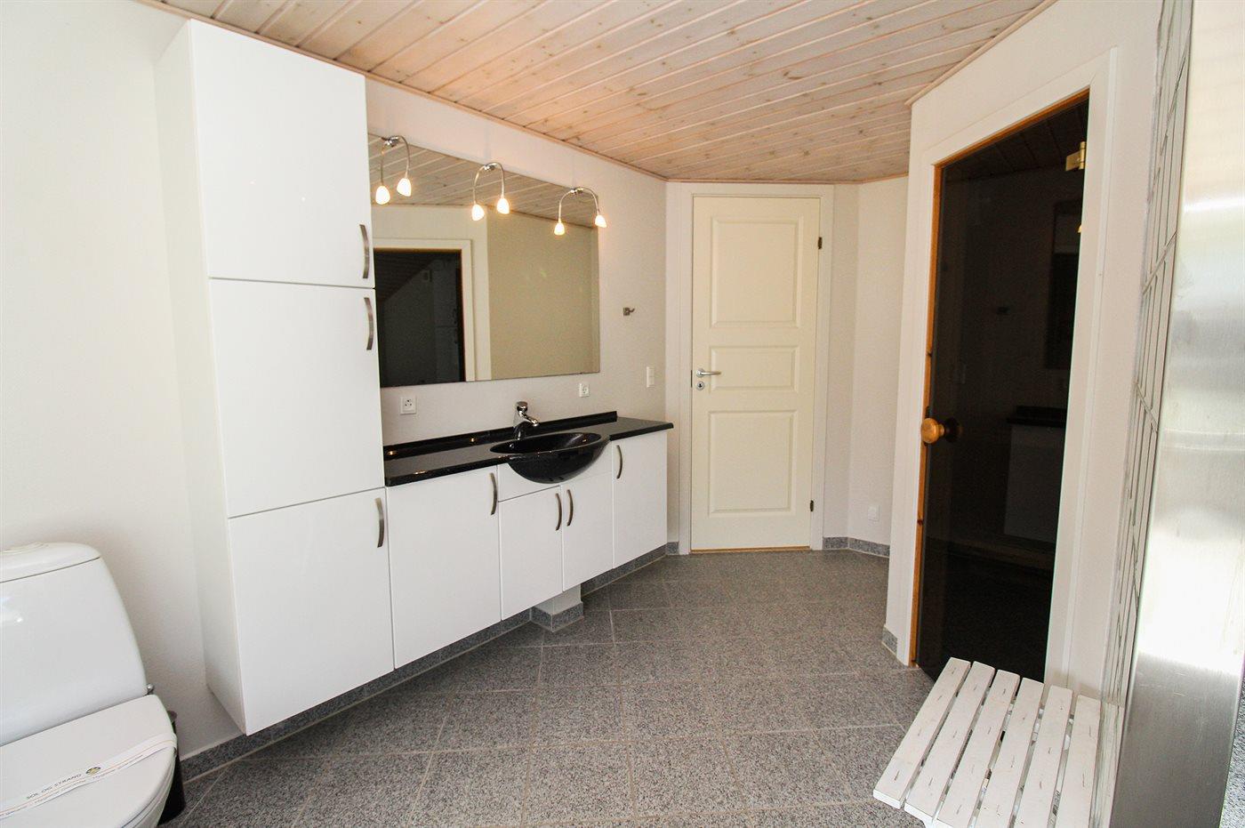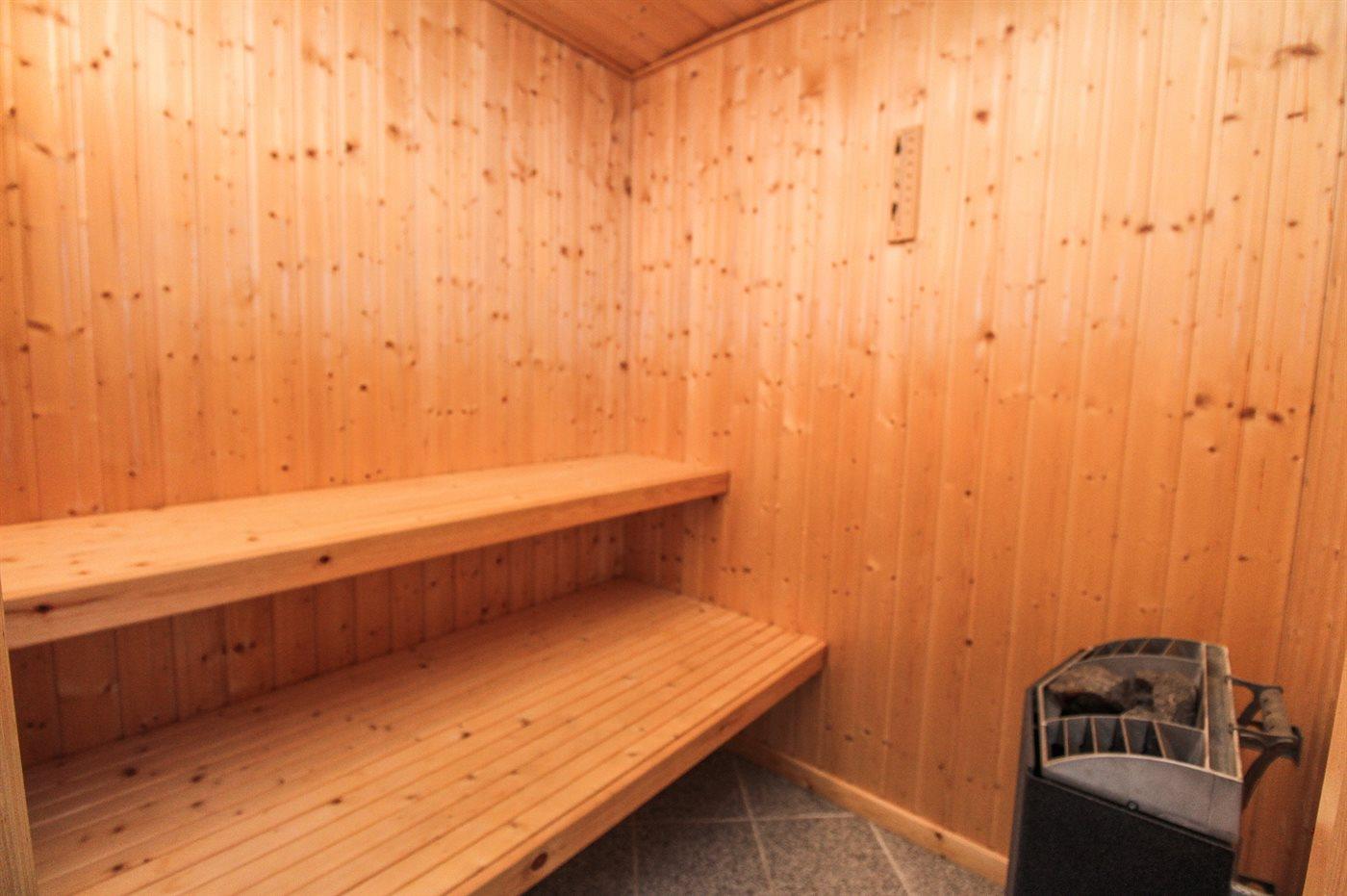 Er is 2 badkamers met douchehok en 2 toiletten. Er is vloerverwarming in 1 badkamer. De sauna biedt de gelegenheid tot ontspanning.