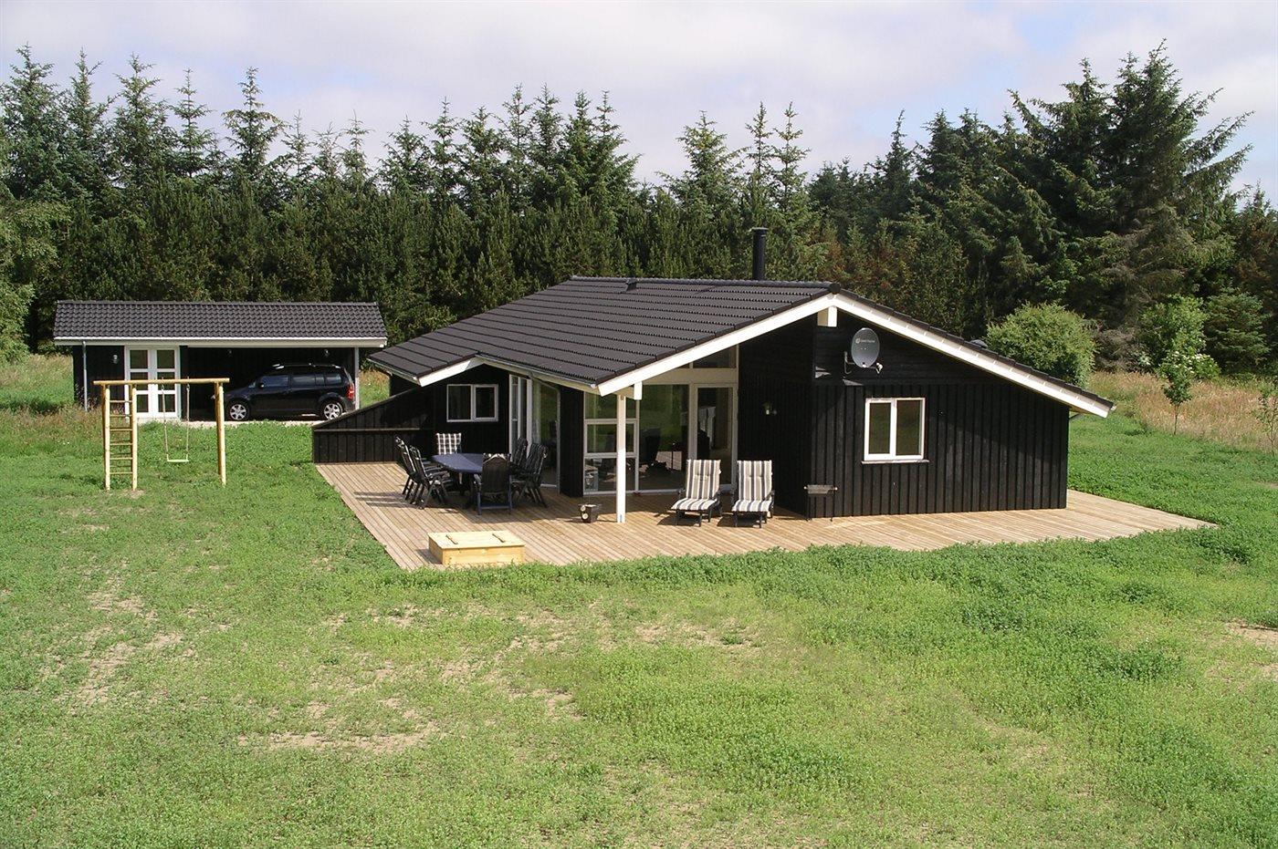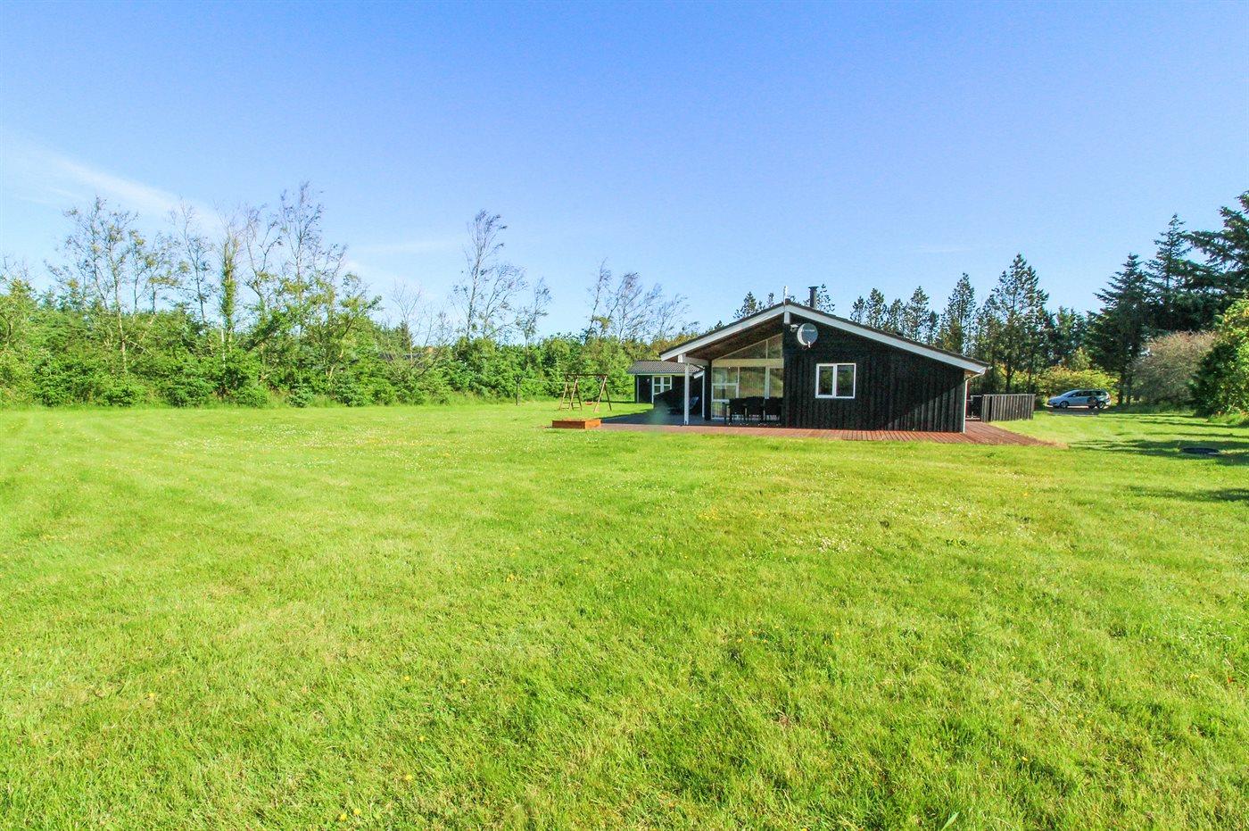 De vakantiewoning is gelegen op een 5300 m² groot natuural grond. Afstand tot de zee 1400 m. Dichtstbijzijnde winkel 2000 m. Bij de vakantiewoning hoort 125 m² terras. Daarnaast is er een 18 m² groot overdekt terras. Schommel. Zandbak. Carport ter beschikking.