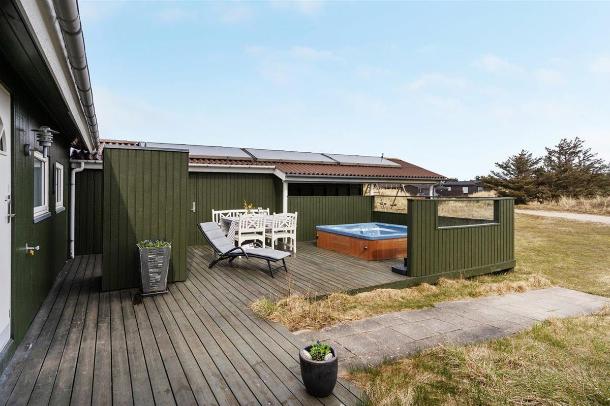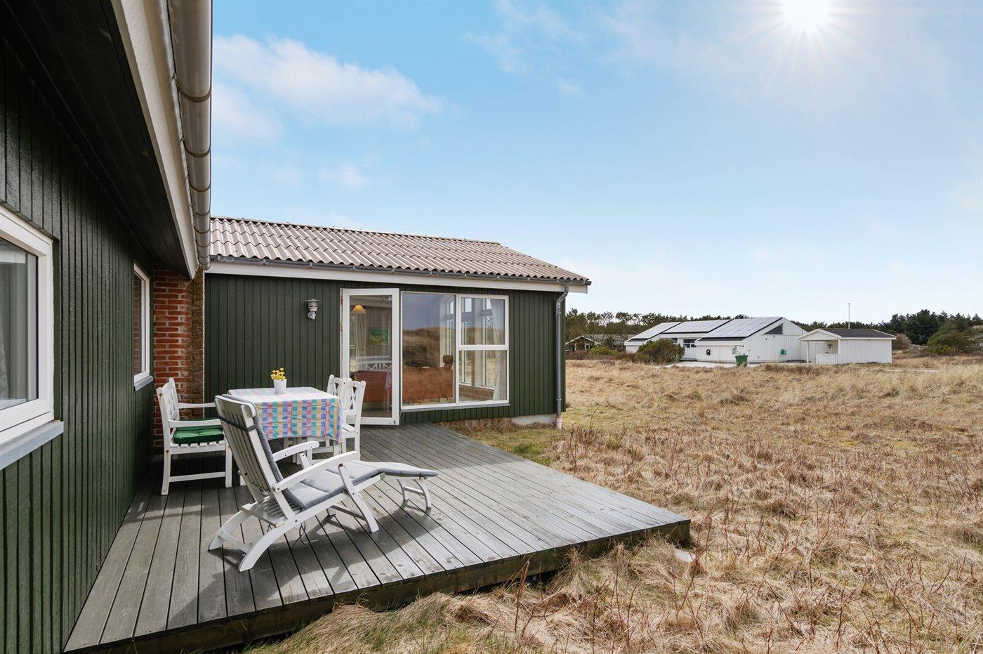 De vakantiewoning is gelegen op een 2769 m² groot Duingrond. Afstand tot de zee 450 m. Dichtstbijzijnde winkel 700 m. Bij de vakantiewoning hoort 48 m² terras. Daarnaast is er een 14 m² groot overdekt terras. Gereedschapsruimte. Schommel en babyschommel. Zandbak. Glijbaan. Buitendouche. Carport ter beschikking. Het huis heeft een stopcontact voor het opladen van een elektrische auto. CEE-stekker.