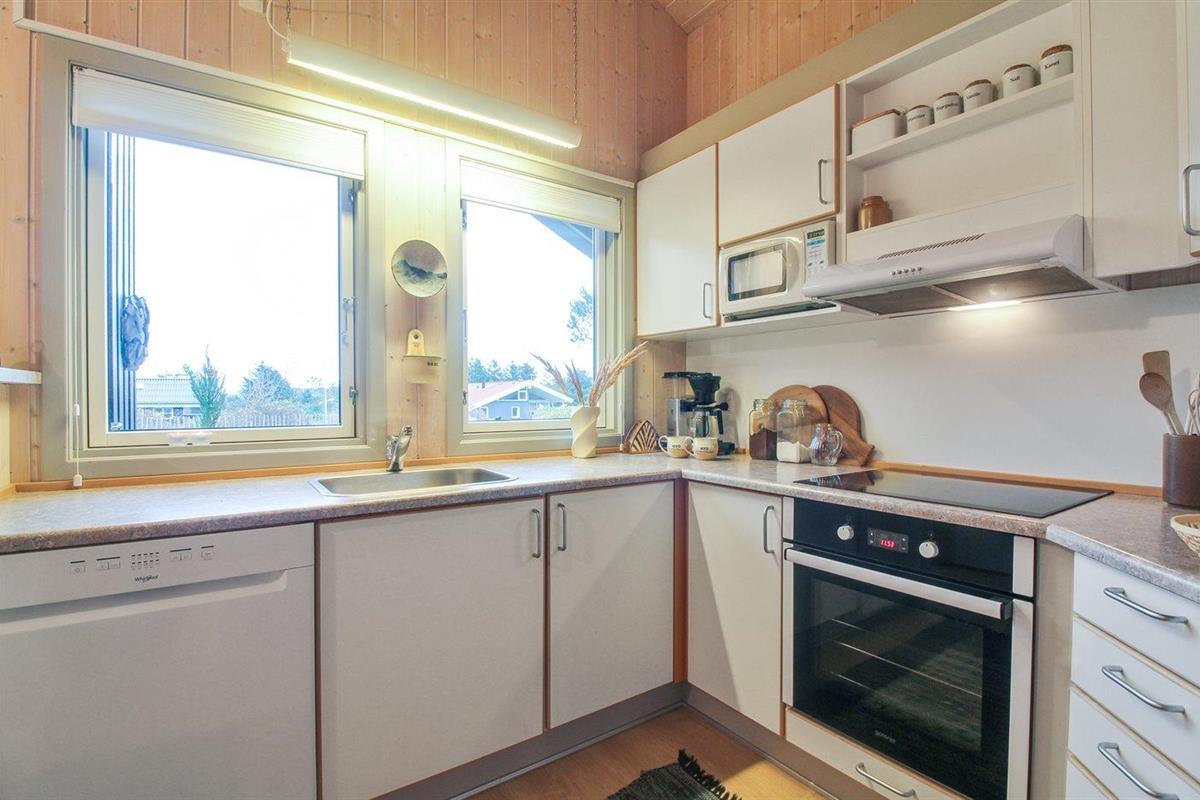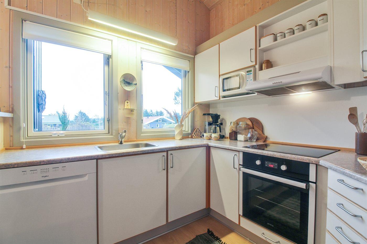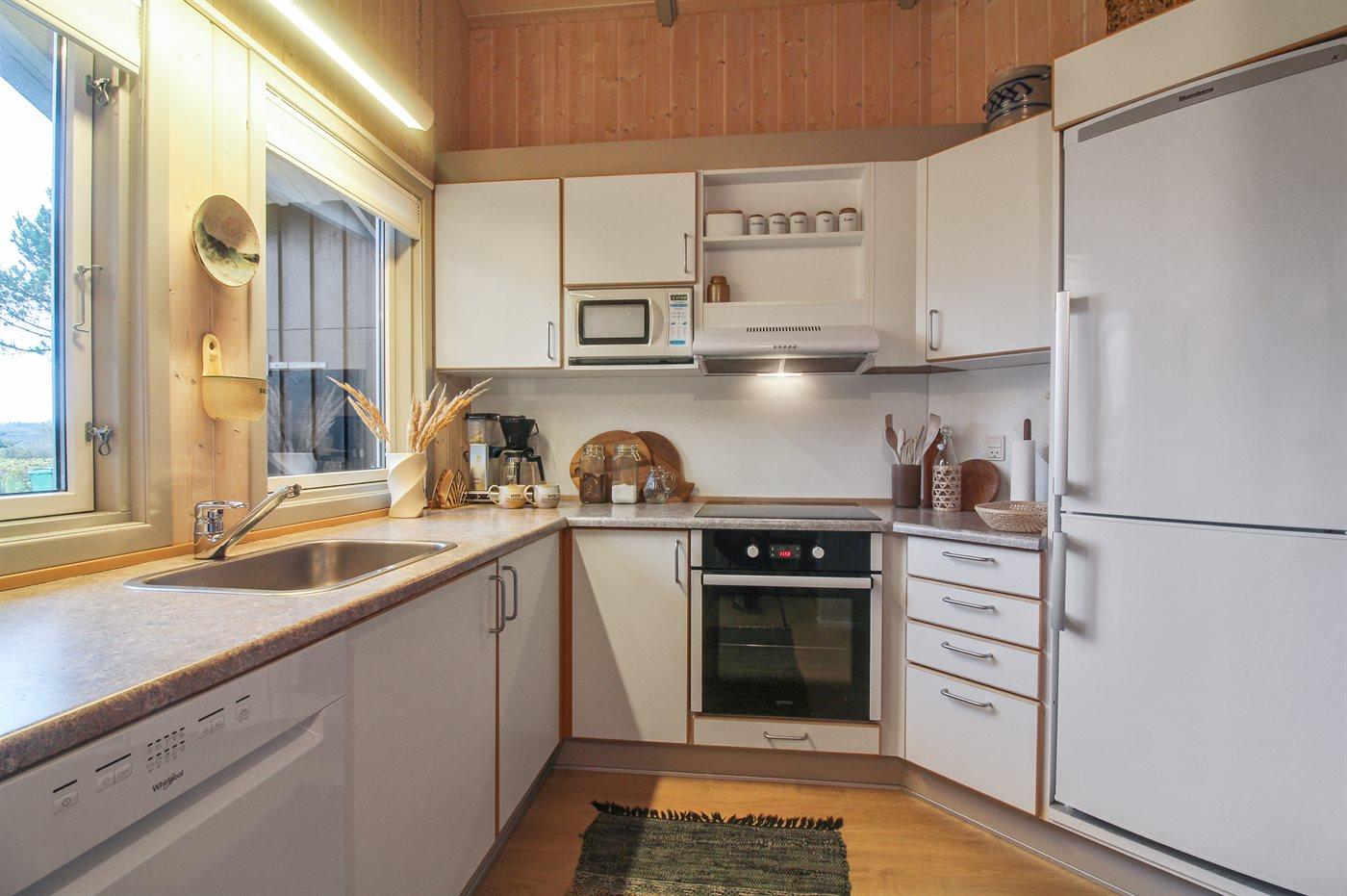 De keuken is uitgerust met koelkast Er zijn 4 keramische kookplaten, heteluchtoven, magnetron en vaatwasser.