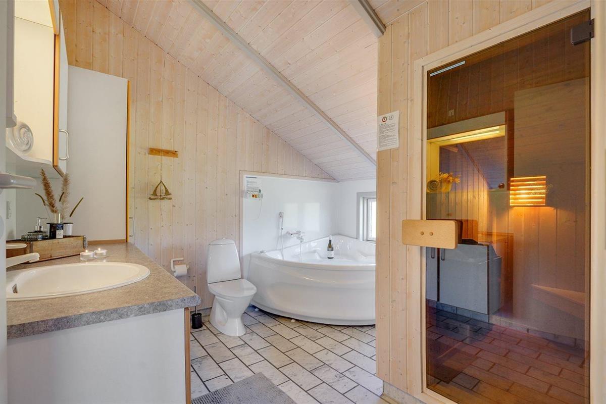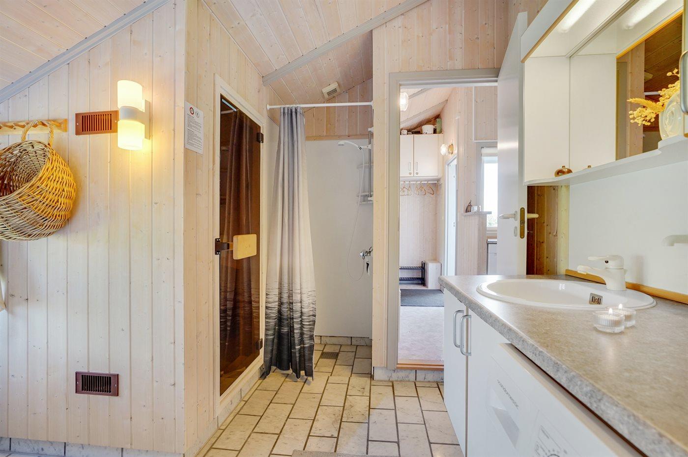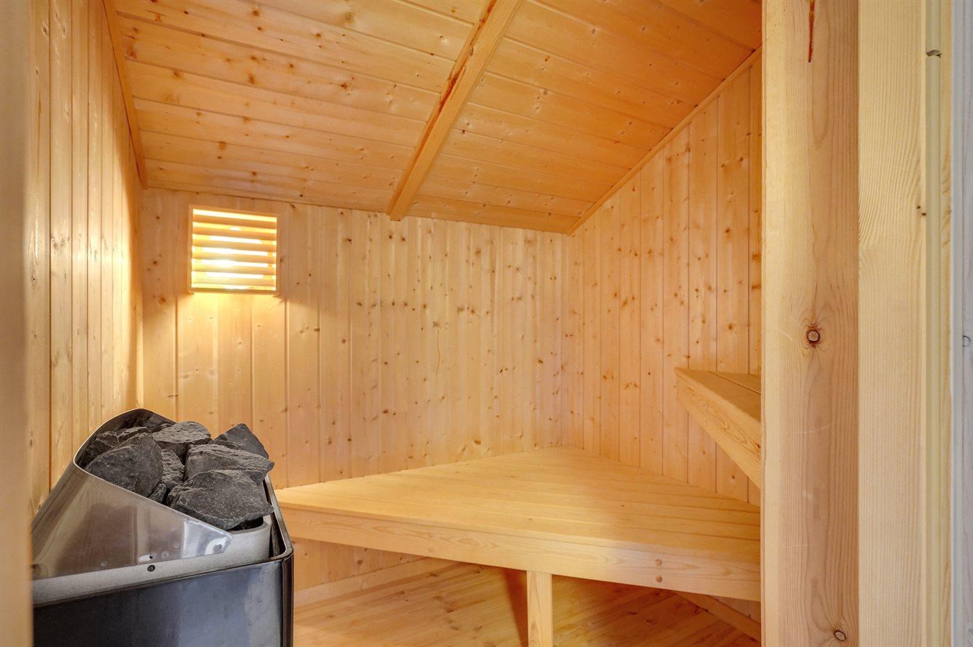 Er is 1 badkamer met douchehok en 2 toiletten, waarvan 1 gastentoilet. Er is vloerverwarming in 1 badkamer. De sauna biedt de gelegenheid tot ontspanning.
