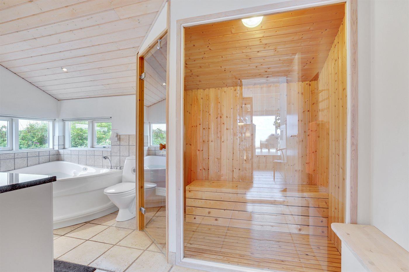 Er is 2 badkamers met douchehok en 2 toiletten. Er is vloerverwarming in 2 van de badkamers. De sauna biedt de gelegenheid tot ontspanning.