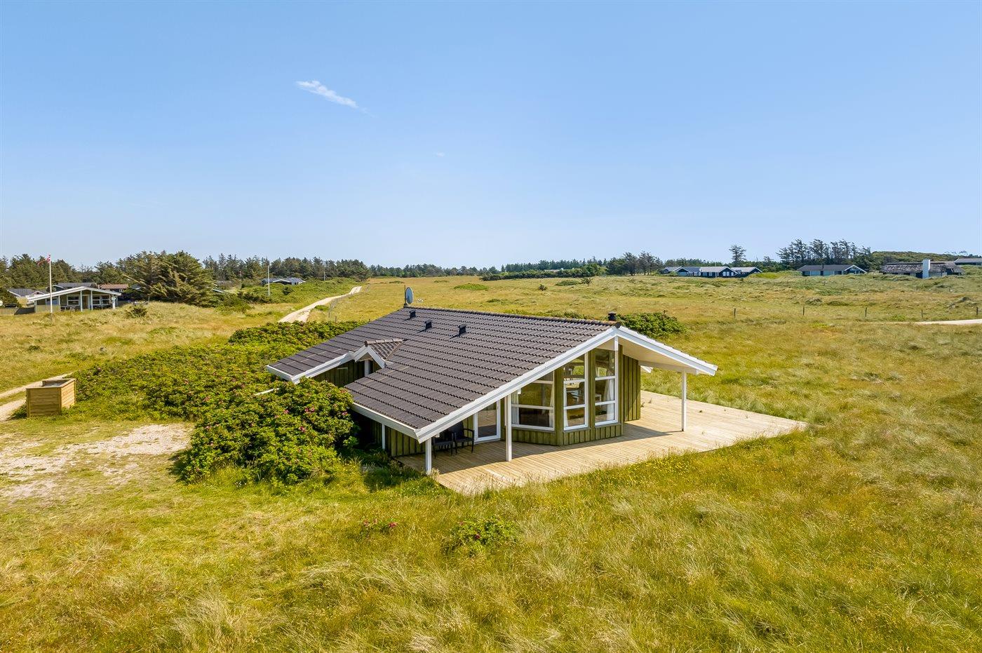 De vakantiewoning is gelegen op een 2900 m² groot natuural grond. Afstand tot de zee 400 m. Dichtstbijzijnde winkel 2000 m. Bij de vakantiewoning hoort 45 m² terras. Daarnaast is er een 10 m² groot overdekt terras. Gereedschapsruimte.