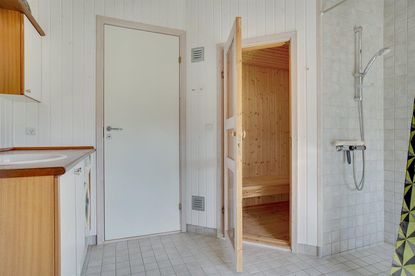 Er is 2 badkamers met douchehok en 2 toiletten. Er is vloerverwarming in 2 van de badkamers. De sauna biedt de gelegenheid tot ontspanning.