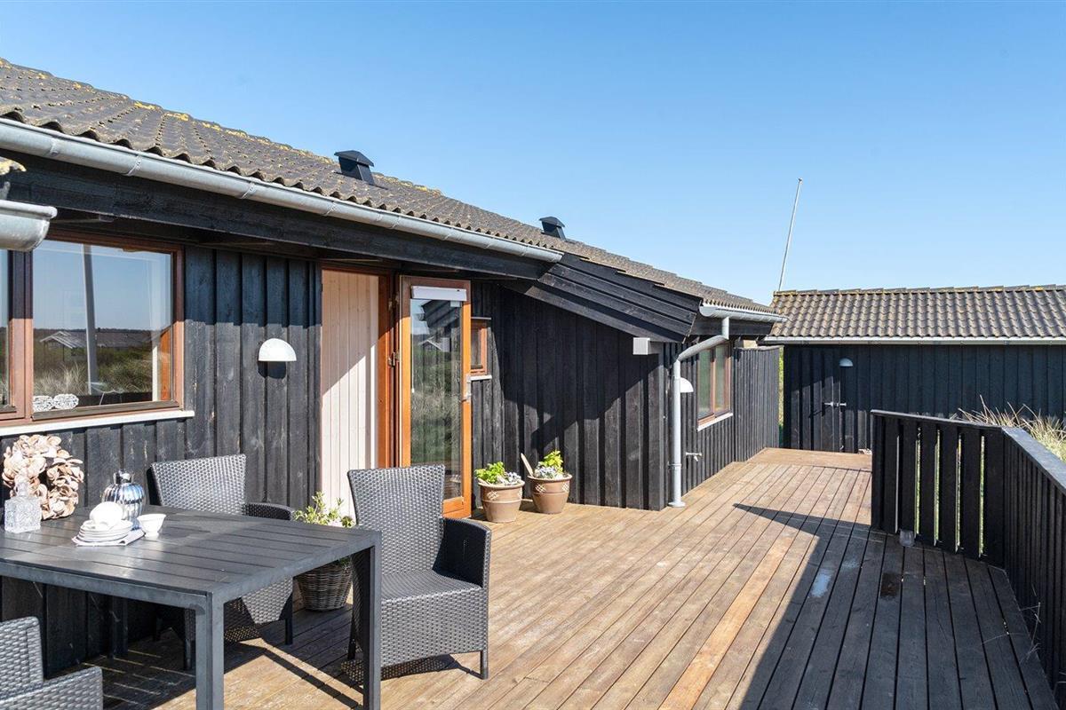 De vakantiewoning is gelegen op een 2843 m² groot natuural grond. Afstand tot de zee 375 m. Dichtstbijzijnde winkel 600 m. Bij de vakantiewoning hoort 80 m² terras. Daarnaast is er een 3 m² groot overdekt terras. Gereedschapsruimte.