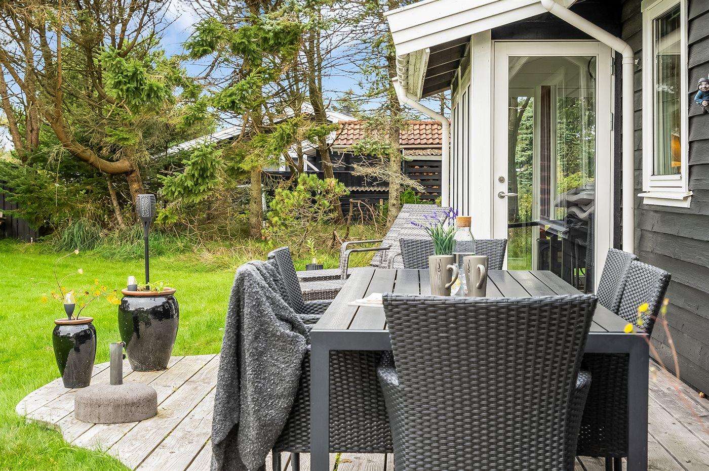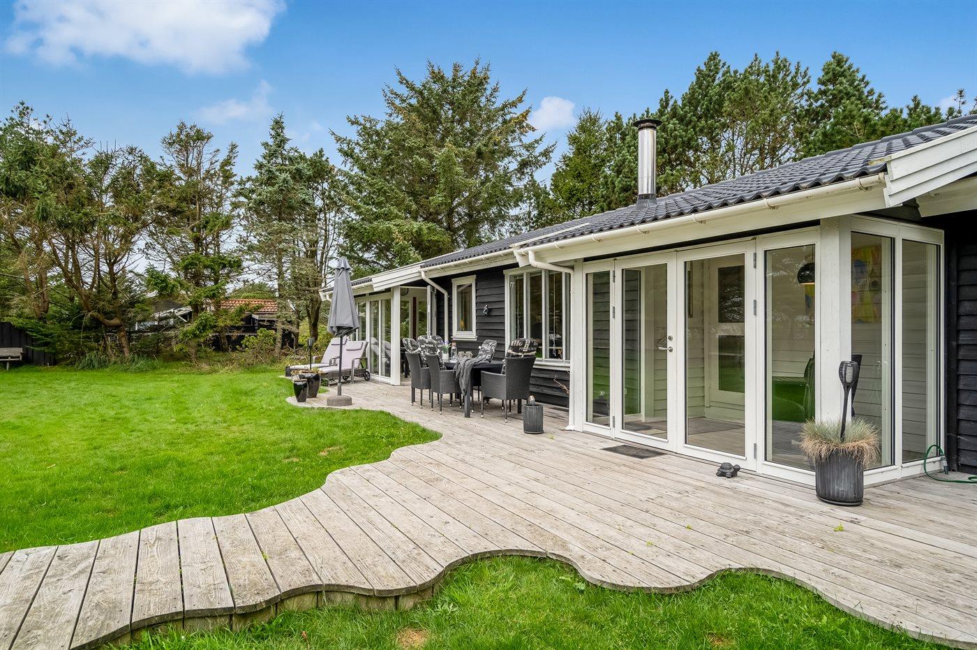 De vakantiewoning is gelegen op een 1242 m² groot natuural grond. De grond is omheind. Afstand tot de zee 1600 m. Dichtstbijzijnde winkel 600 m. Bij de vakantiewoning hoort 80 m² terras. Daarnaast is er een 10 m² groot overdekt terras. Tevens heeft u de beschikking over een serre. Gereedschapsruimte. Schommel. Zandbak. Wipwap.Vuurplaats. Parkeerplaats bij het huis.