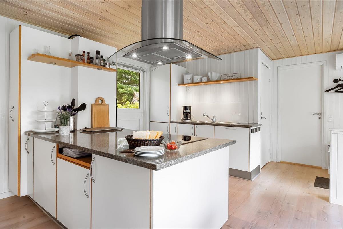 De keuken is uitgerust met koelkast Er is 4 inductiekookplaten, heteluchtoven, magnetron en vaatwasser.