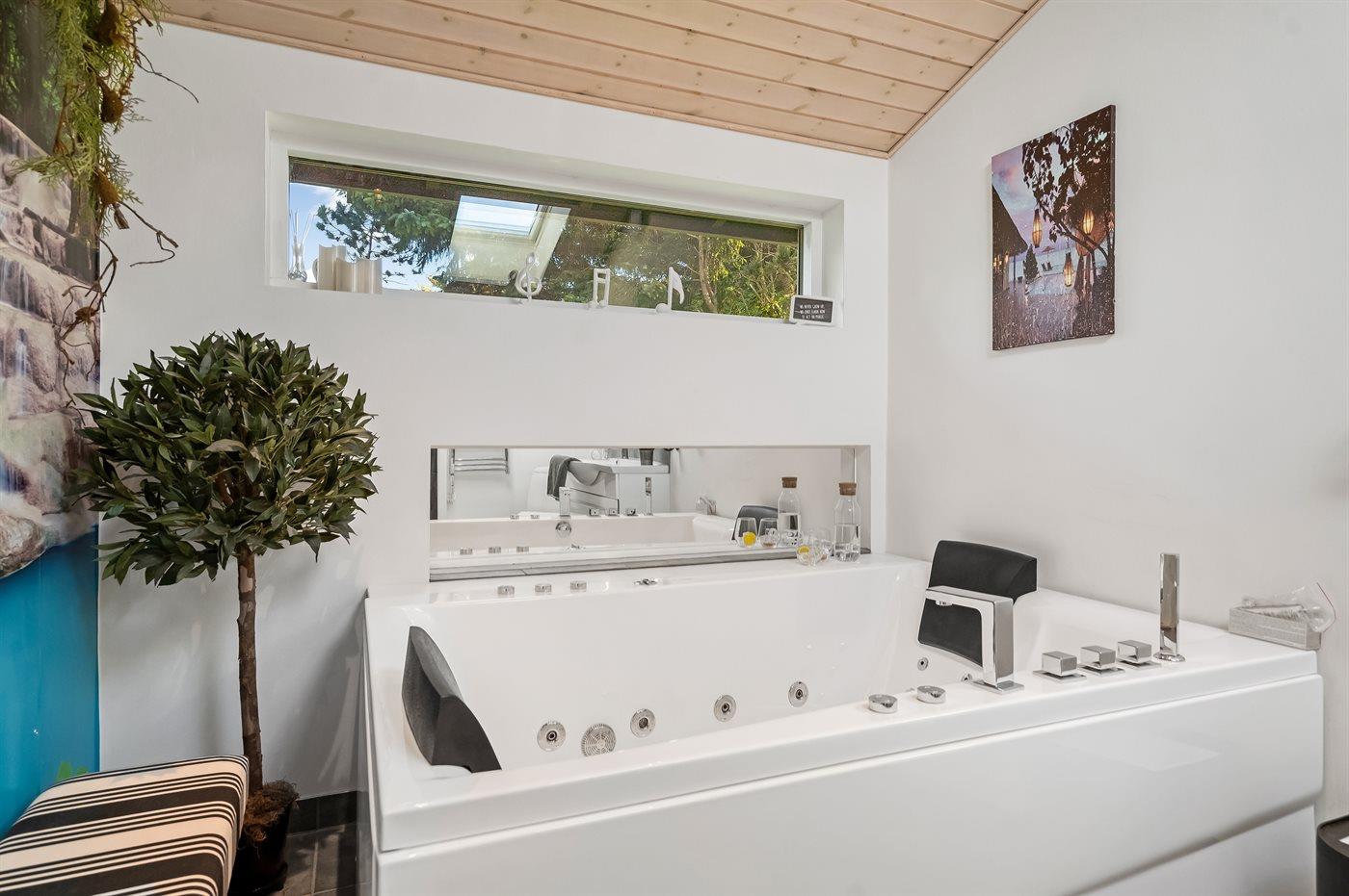 Het binnenbubbelbad (vulwater) biedt ontspanning aan 2 personen.