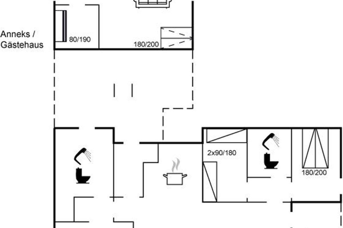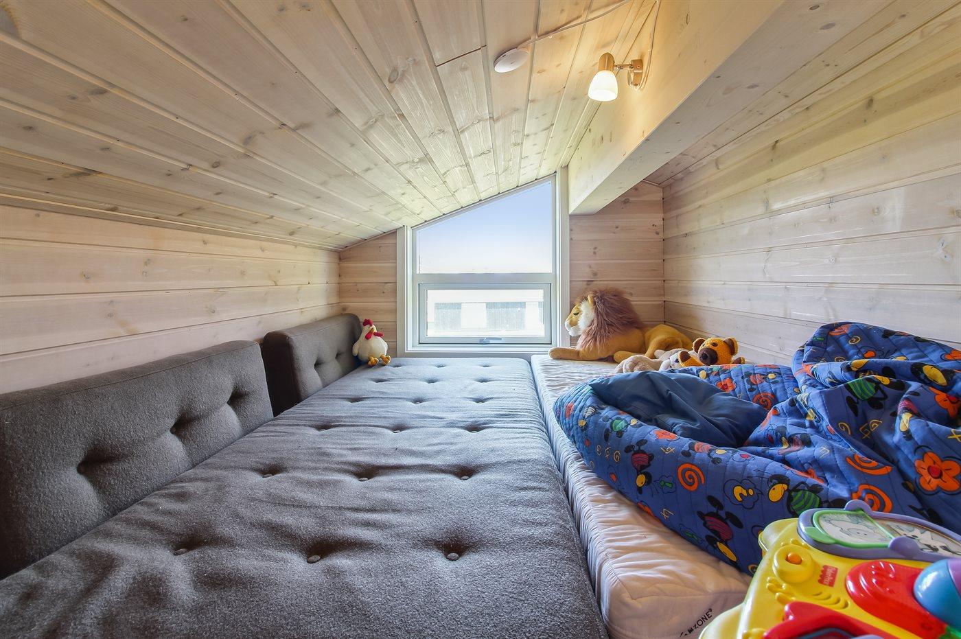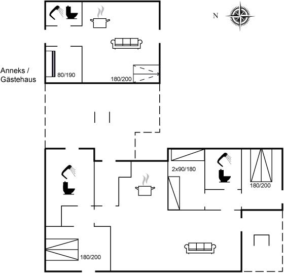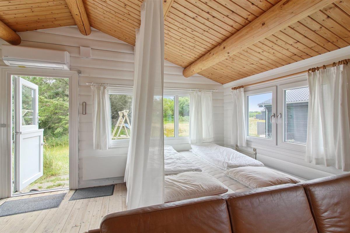 Er zijn in totaal 3 slaapkamers. De slaapplaatsen zijn als volgt verdeeld: 4 slaapplaatsen in tweepersoonsbedden. 2 slaapplaatsen in stapelbed. 2 slaapplaatsen in slaapbanken (tweepersoons).2 slaapplaatsen op matrassen. 2 van deze slaapplaatsen bevinden zich op de open slaapzolderen 4 in het bijgebouw, waarvan 2 van de slaapplaatsen in de woonkamer van het bijgebouw. Verder is kinderbed ter beschikking.