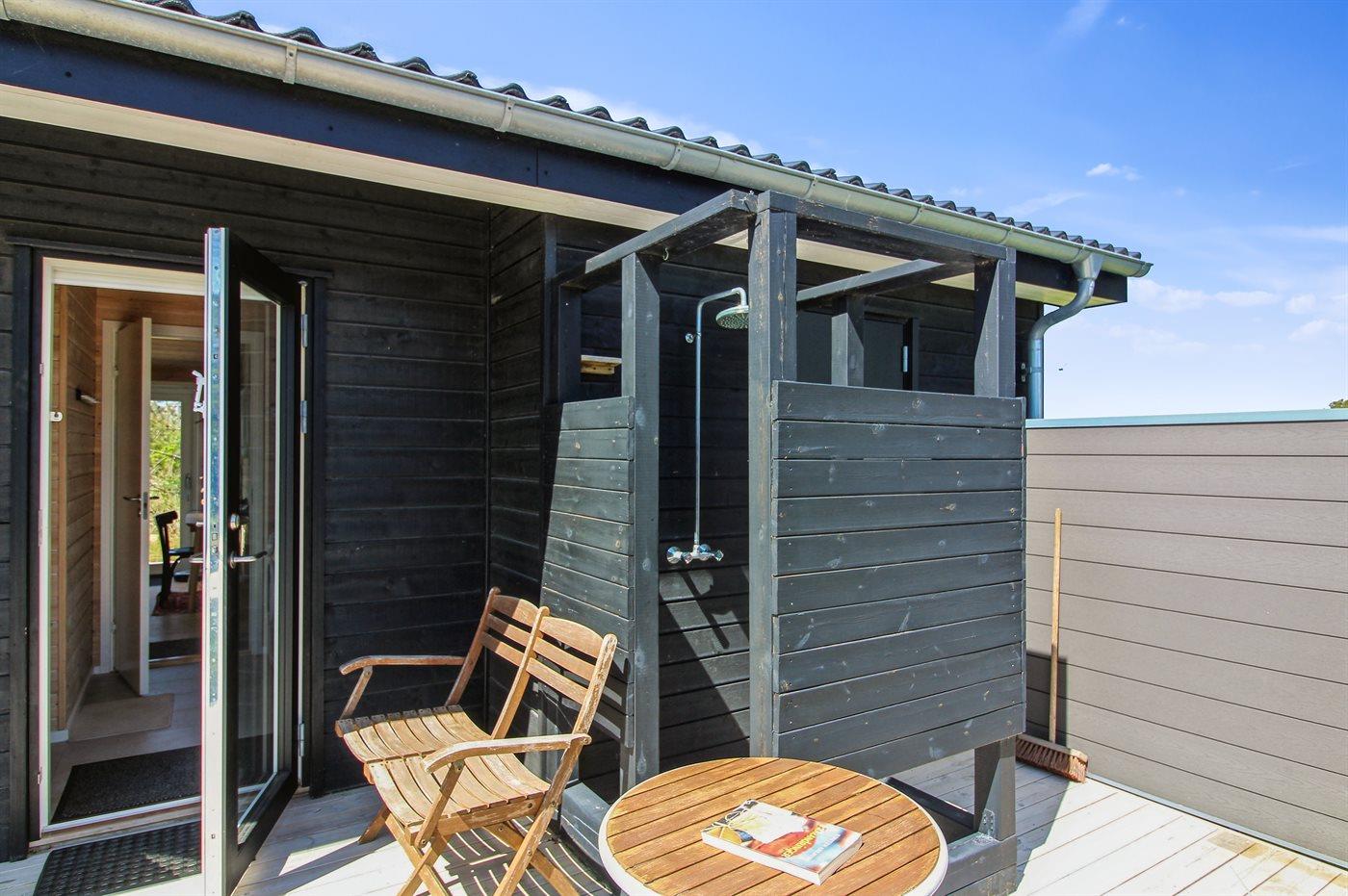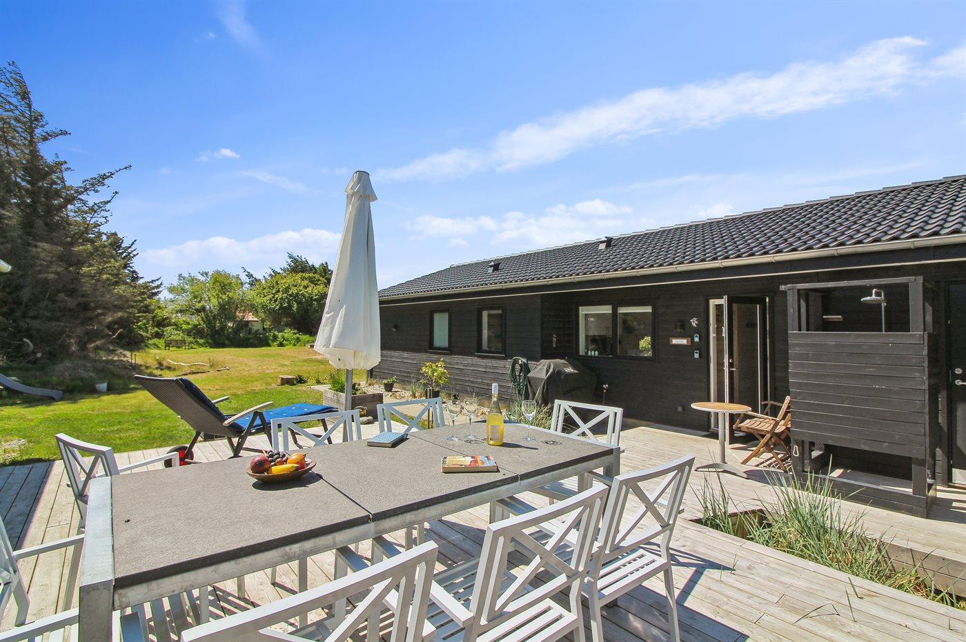 De vakantiewoning is gelegen op een 1750 m² groot natuural grond. Afstand tot de zee 400 m. Dichtstbijzijnde winkel 4000 m. Er is een golfbaan op een afstand van 10000 m. Bij de vakantiewoning hoort terras. Daarnaast is er een overdekt terras. Schommel. Glijbaan. Buitensauna. Buitendouche. Barbecue. Het huis heeft een stopcontact voor het opladen van een elektrische auto. Parkeerplaats bij het huis.