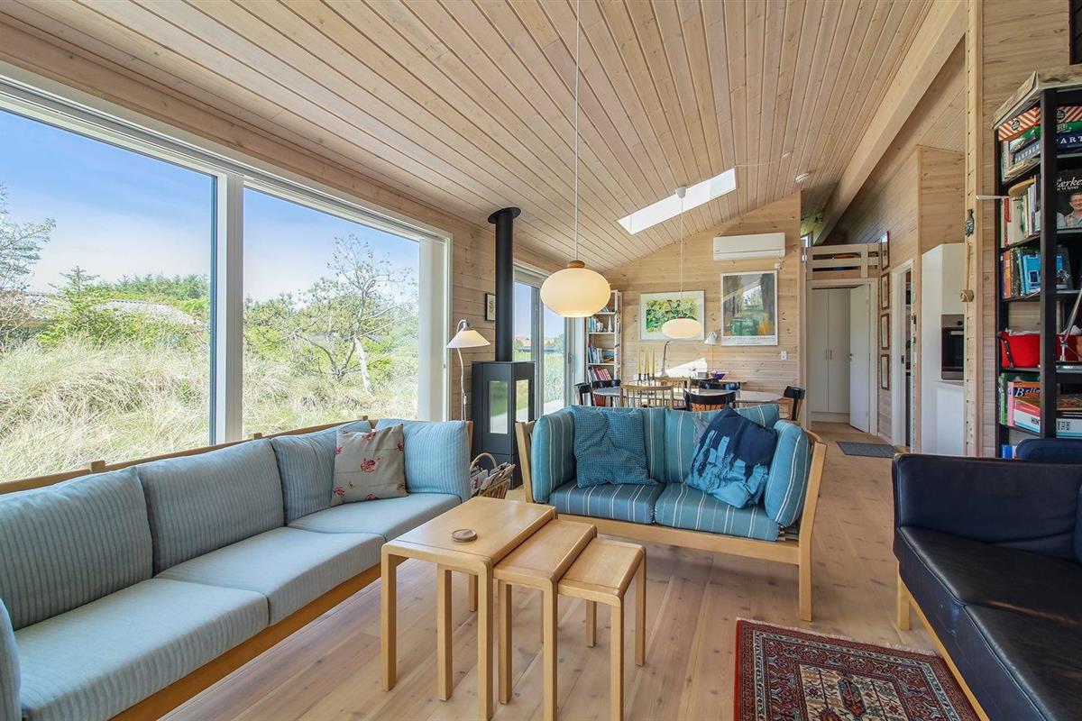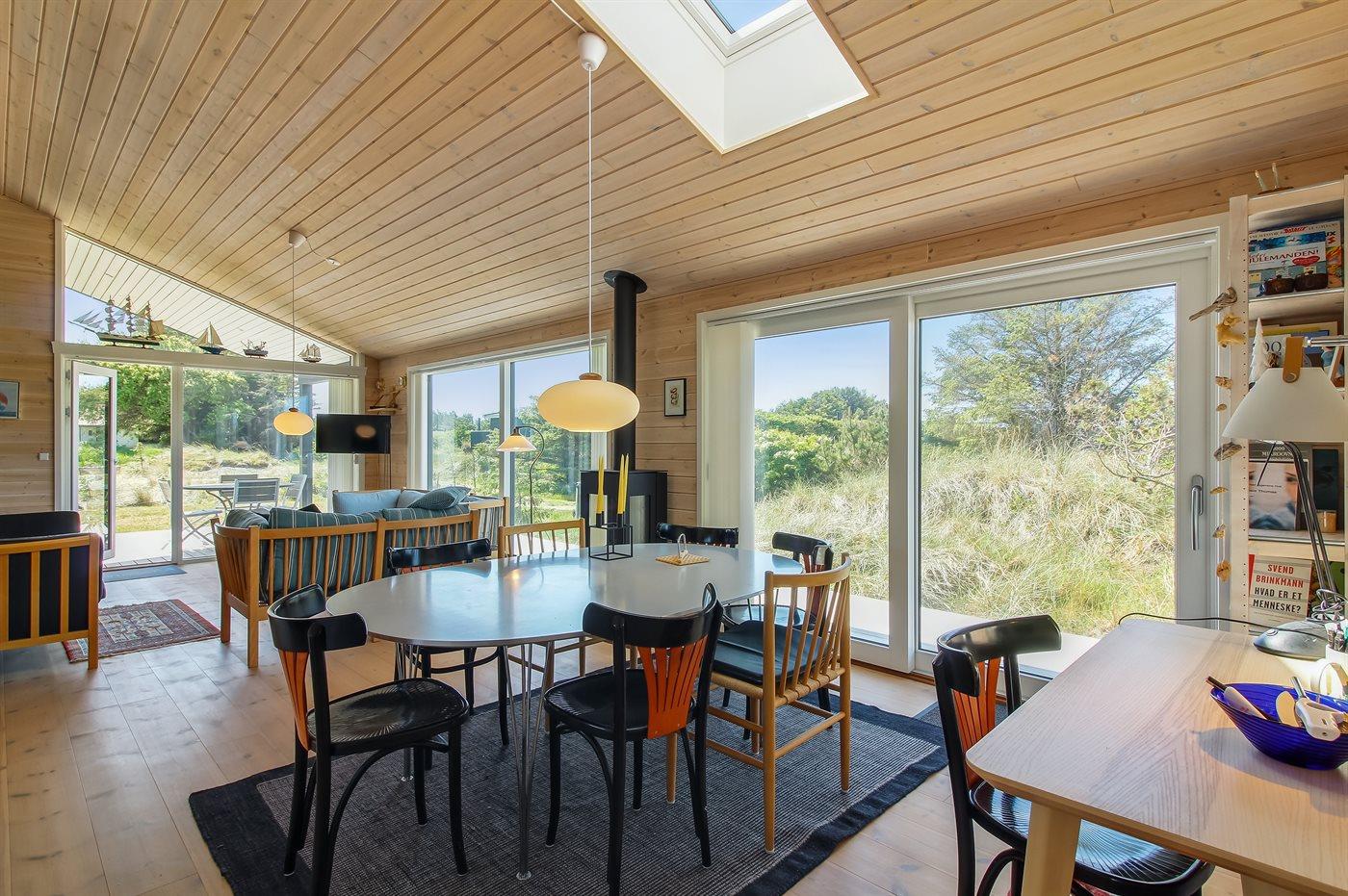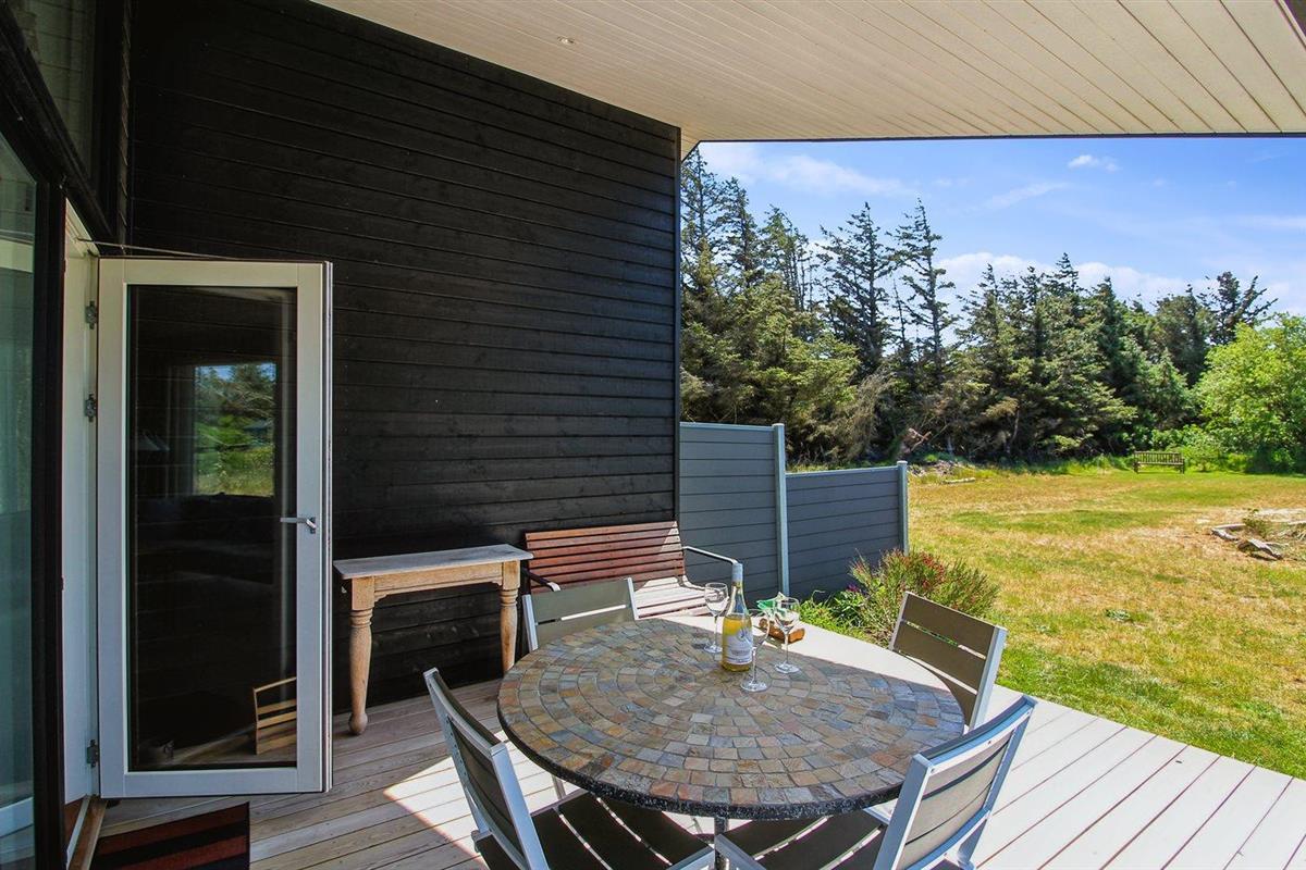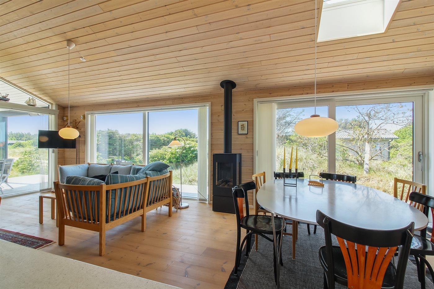 Modern vakantiehuis nabij zee met sauna, houtkachel en overdekt terras voor een ontspannen verblijf.