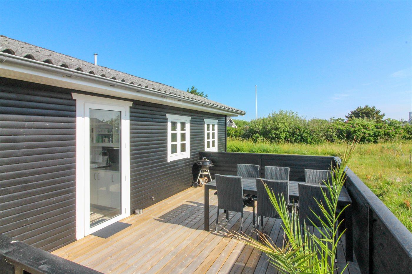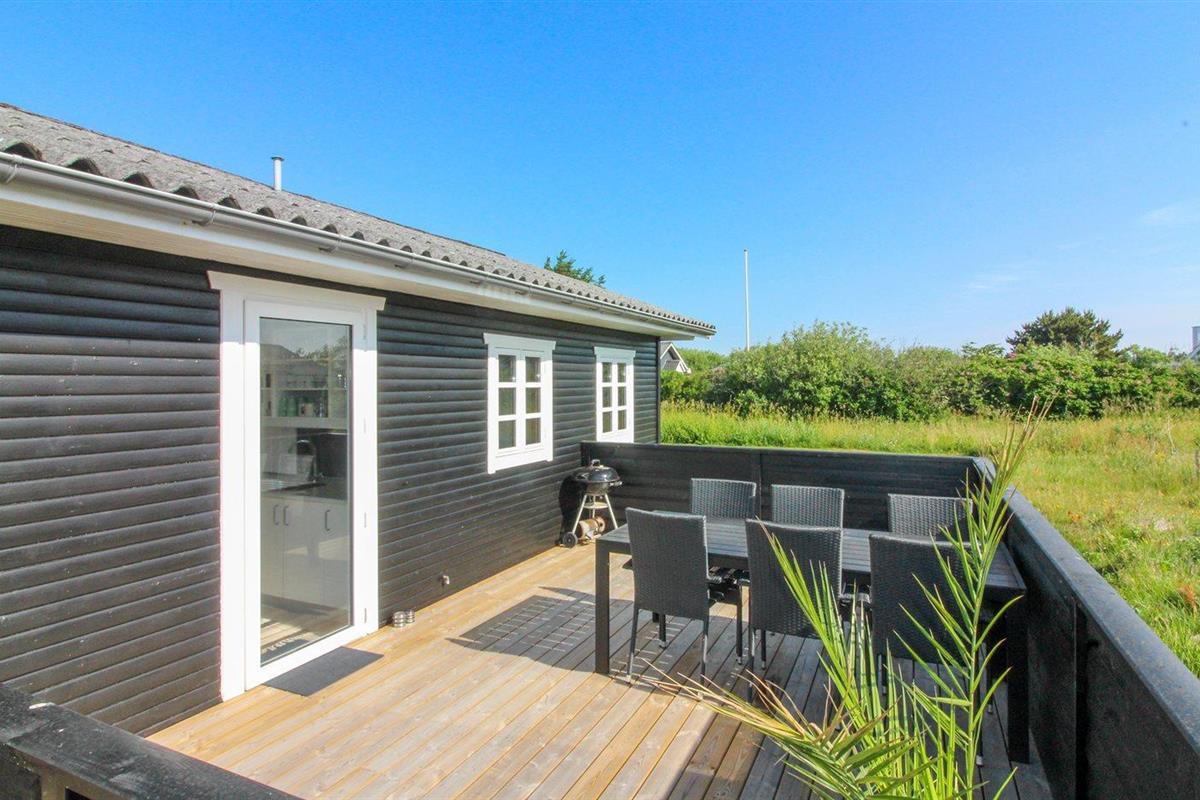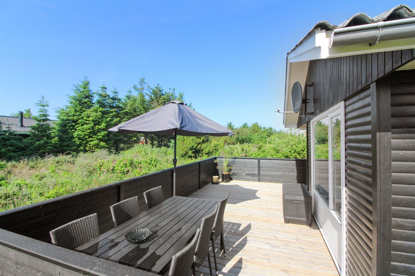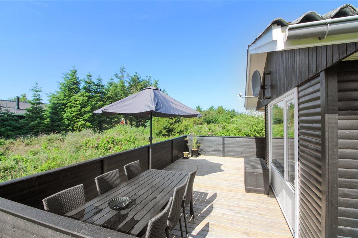 De vakantiewoning is gelegen op een 1200 m² groot natuural grond. Afstand tot de zee 900 m. Dichtstbijzijnde winkel 500 m. Bij de vakantiewoning hoort 45 m² terras. Daarnaast is er een 12 m² groot overdekt terras. Waarvan in totaal 57 m² beschut terras. Zandbak. Parkeerplaats bij het huis.