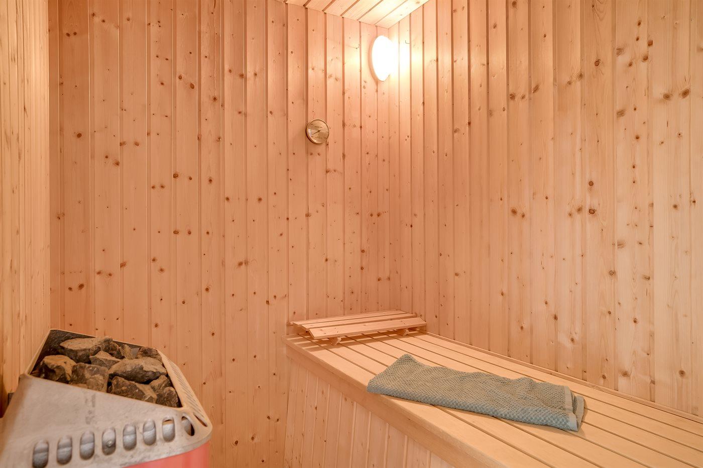 Er is 2 badkamers met douche en 2 toiletten. Er is vloerverwarming in 2 van de badkamers. De sauna biedt de gelegenheid tot ontspanning.