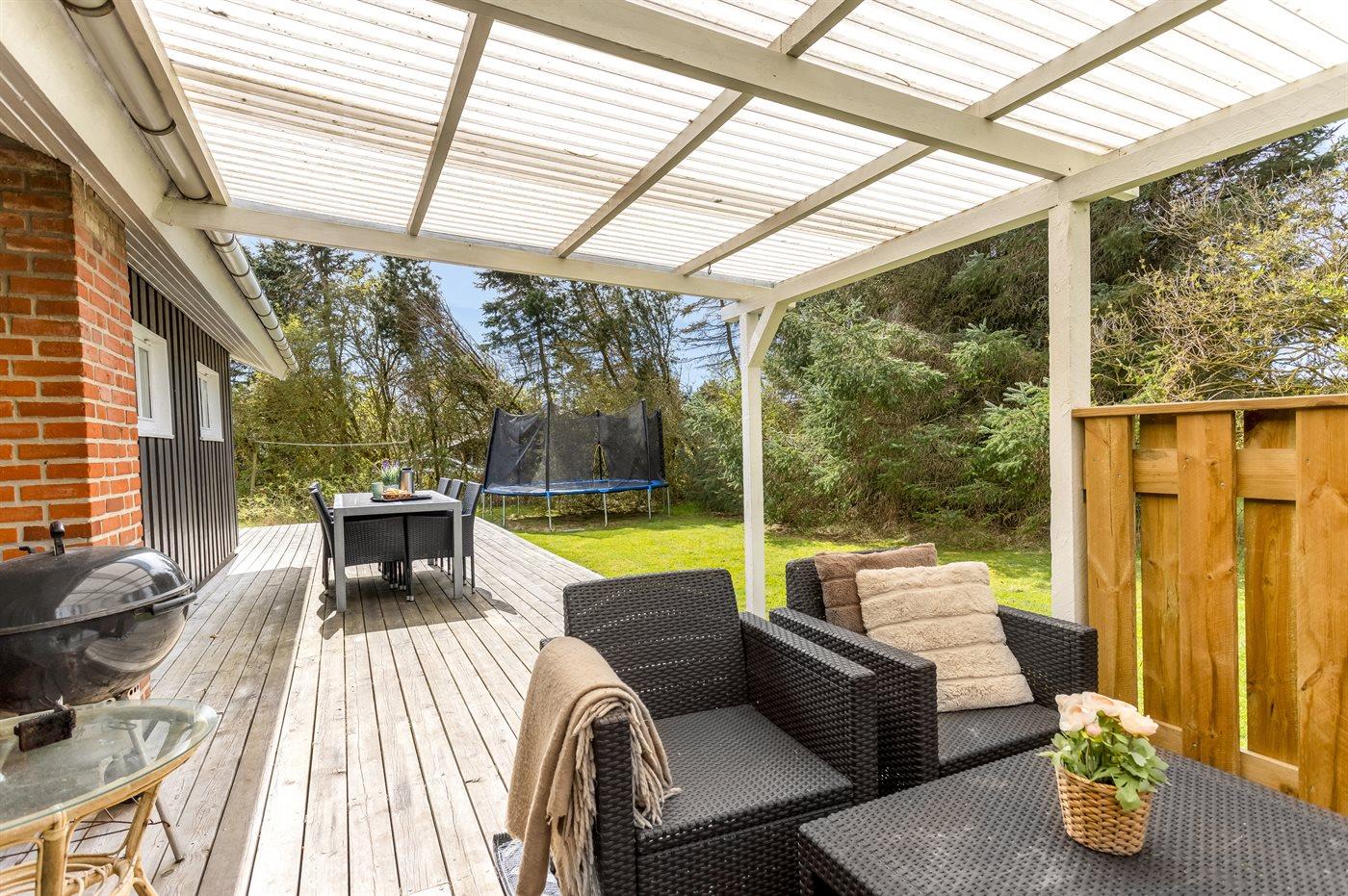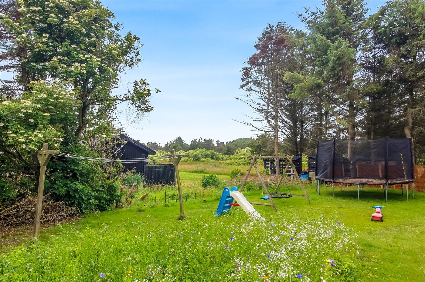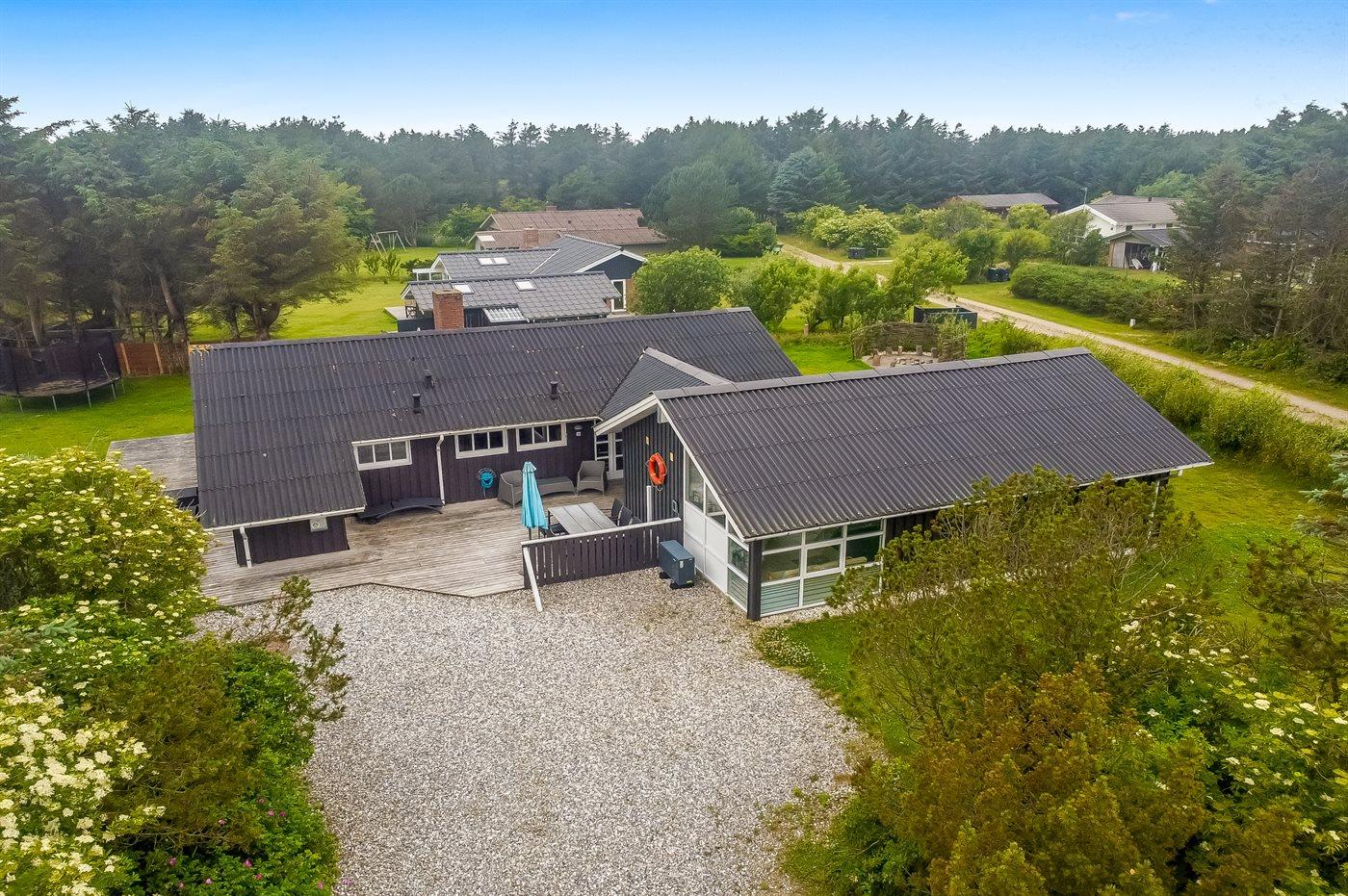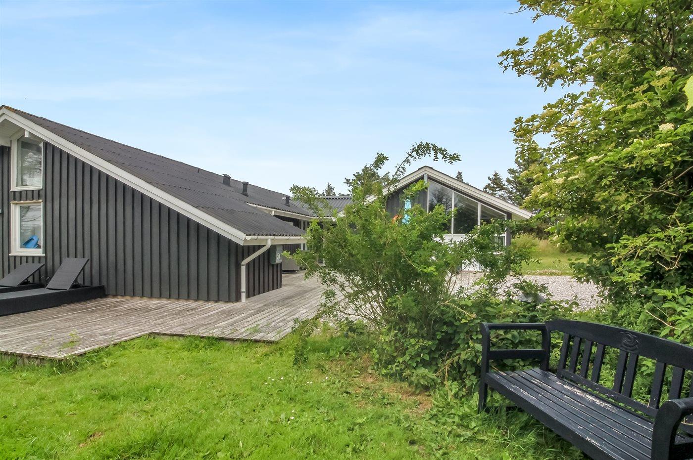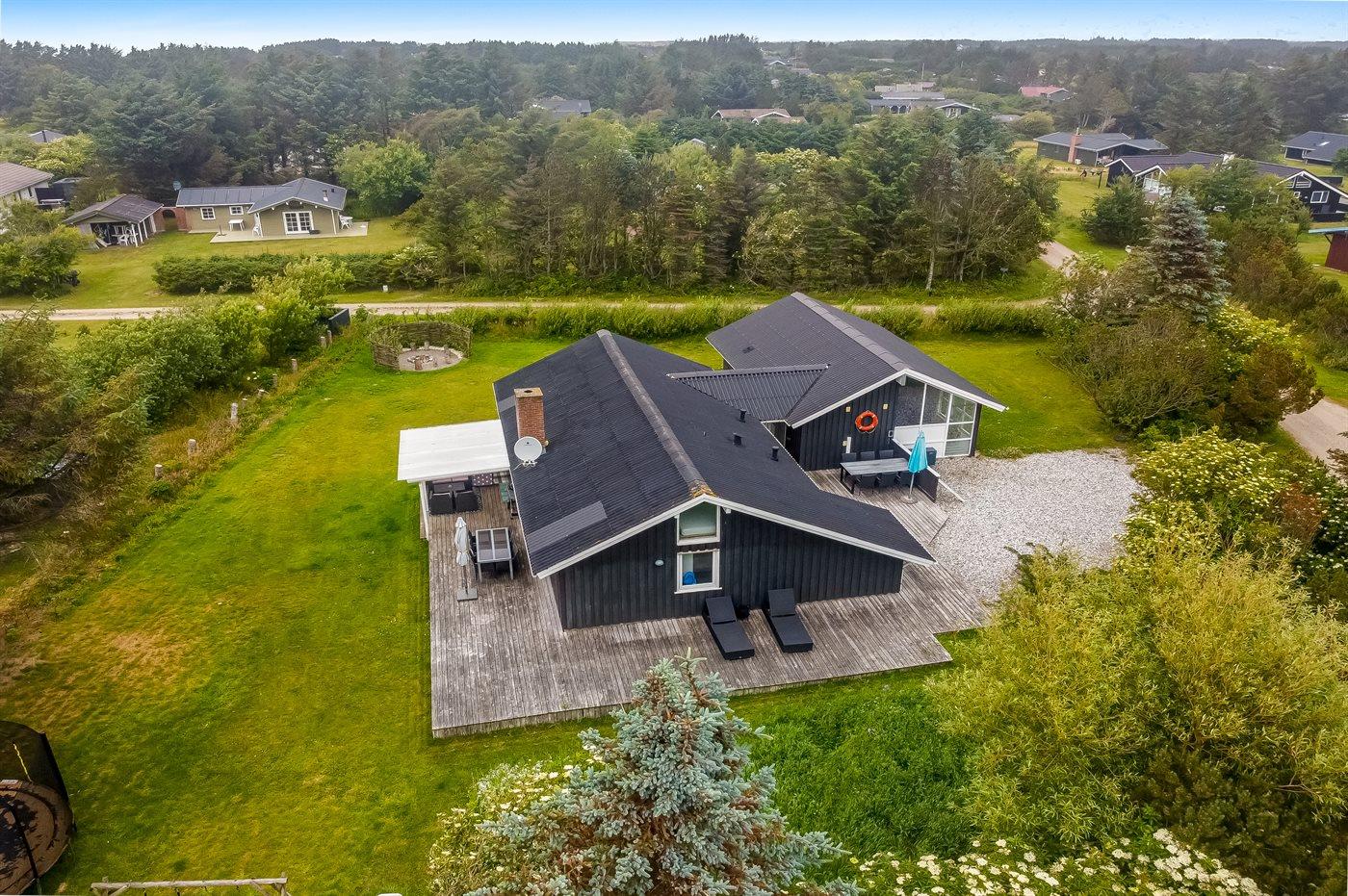 De vakantiewoning is gelegen op een 1292 m² groot natuural grond. Afstand tot de zee 300 m. Dichtstbijzijnde winkel 600 m. Bij de vakantiewoning hoort 85 m² terras. Daarnaast is er een 12 m² groot overdekt terras. Gereedschapsruimte. Schommel. Trampoline. Het huis heeft een stopcontact voor het opladen van een elektrische auto. Parkeerplaats bij het huis.