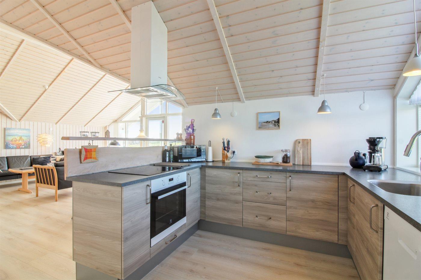 De keuken is uitgerust met koelkast Er is 4 inductiekookplaten, heteluchtoven, magnetron en vaatwasser.