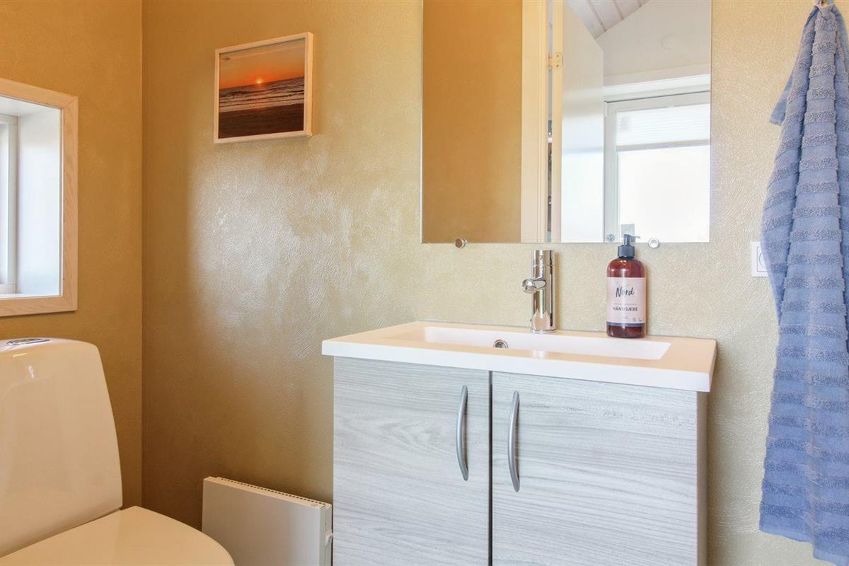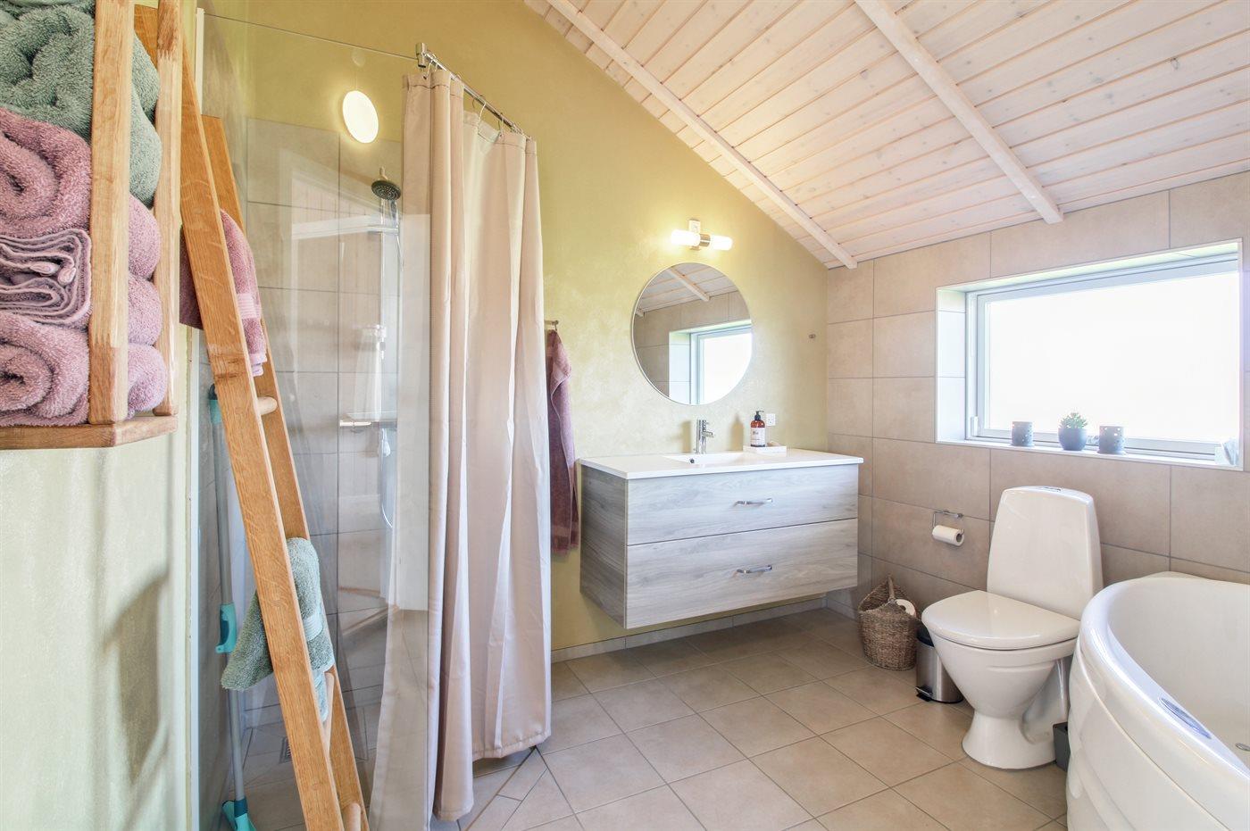 Er is 1 badkamer met douchehok en 2 toiletten, waarvan 1 gastentoilet. Er is vloerverwarming in 1 badkamer.