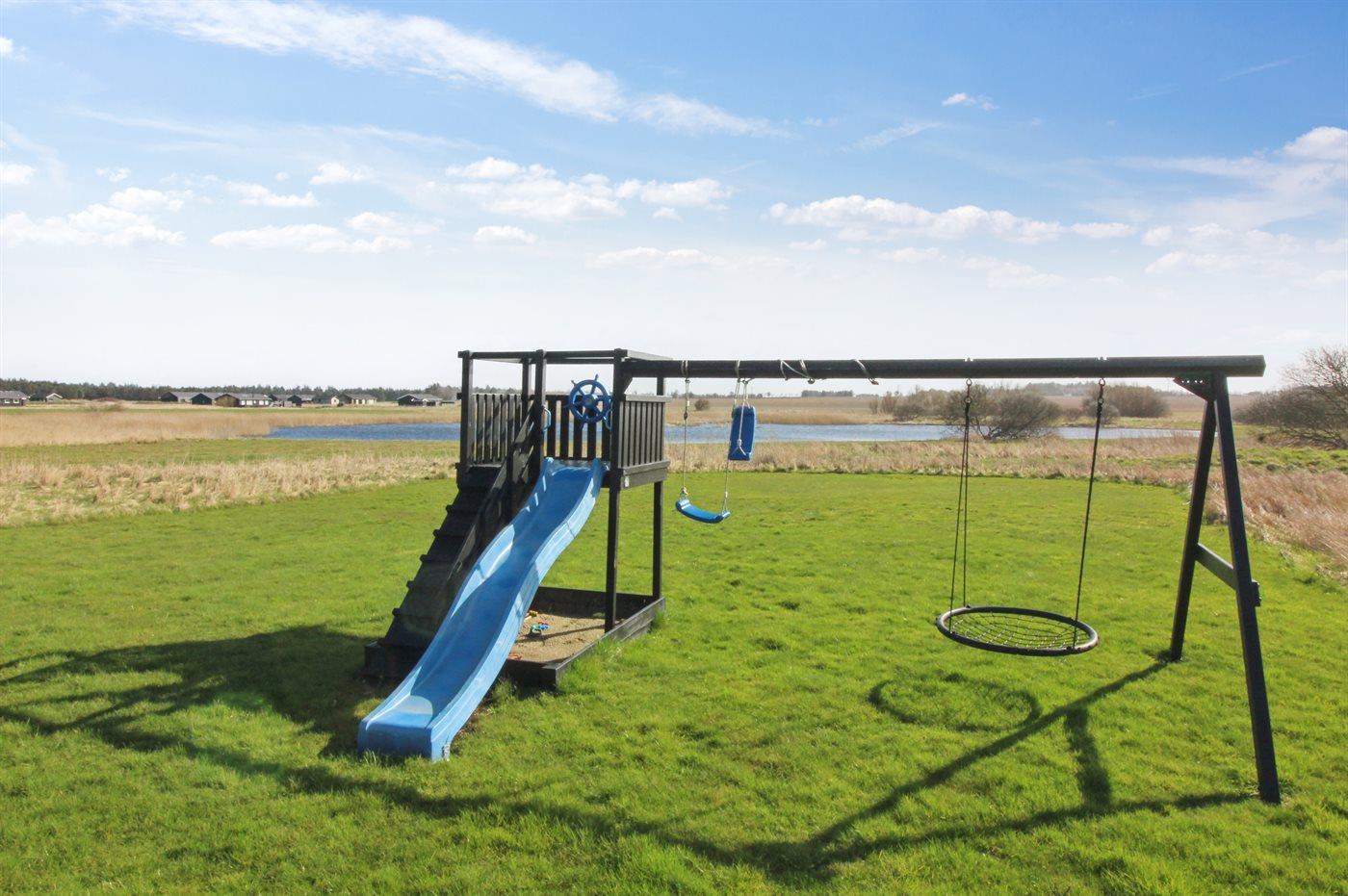De vakantiewoning is gelegen op een 2400 m² groot natuural grond. Afstand tot de zee 1500 m. Dichtstbijzijnde winkel 1200 m. Bij de vakantiewoning hoort 45 m² terras. Daarnaast is er een 10 m² groot overdekt terras. Schommel. Zandbak. Speeltoren. Glijbaan. Parkeerplaats bij het huis.
