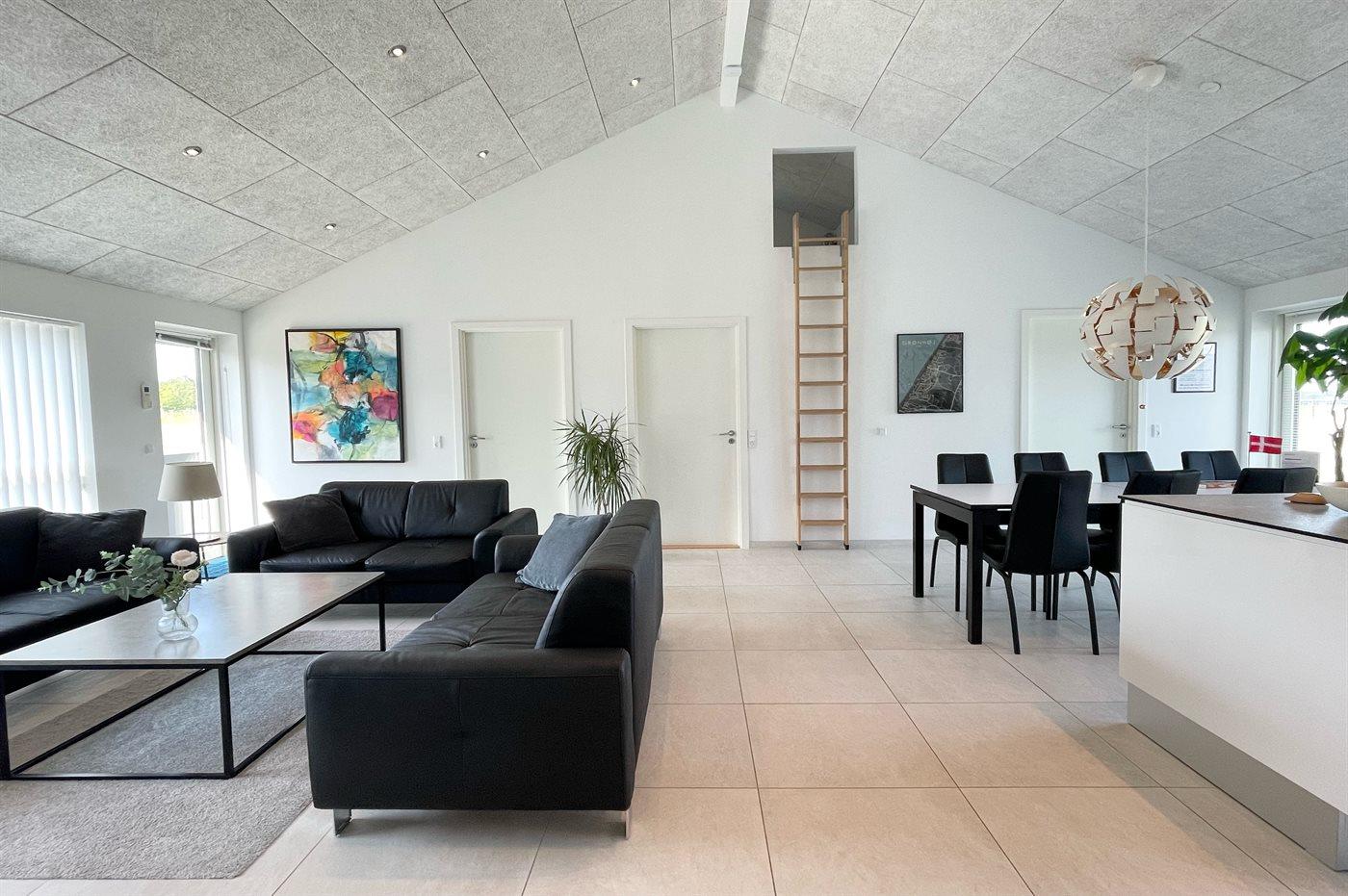 Ruim, modern vakantiehuis in Grønhøj met sauna, bubbelbaden en activiteitenruimte voor ultiem comfort.
