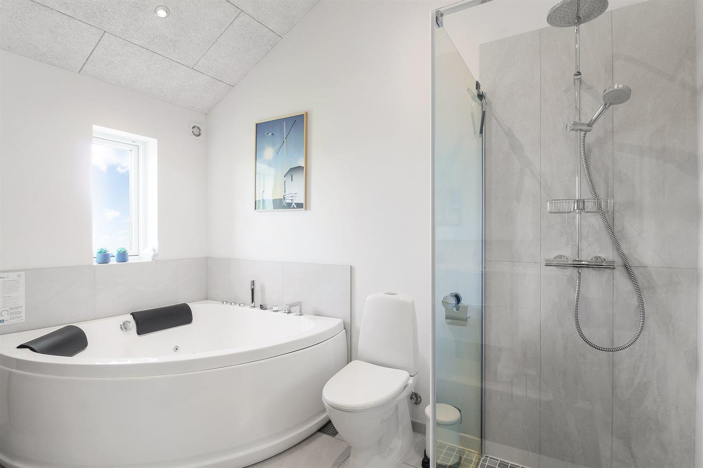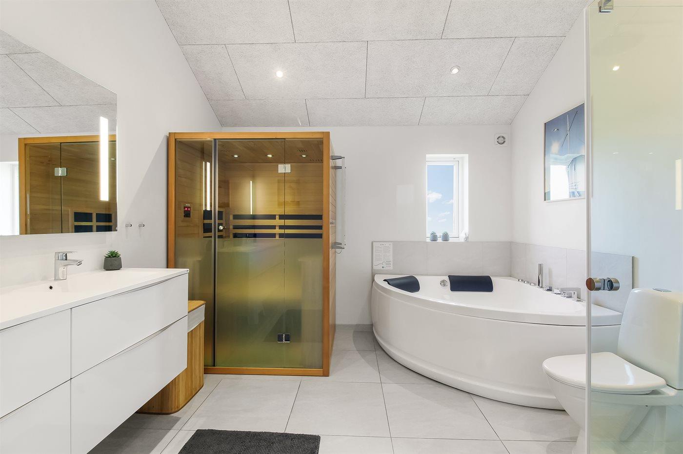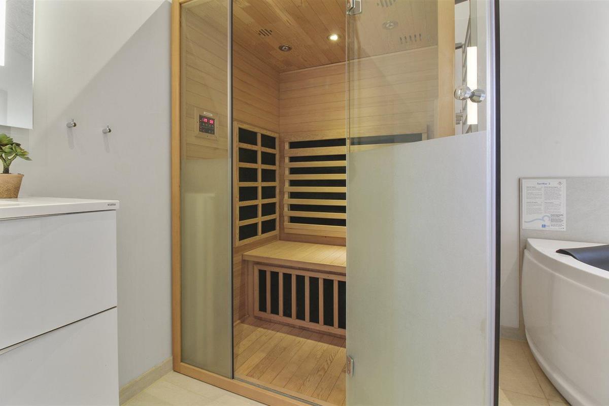 Er is 2 badkamers met douchehok en 3 toiletten, waarvan 1 gastentoilet. Er is vloerverwarming in 2 van de badkamers. Er is vloerverwarming in het gastentoilet. De sauna biedt de gelegenheid tot ontspanning.